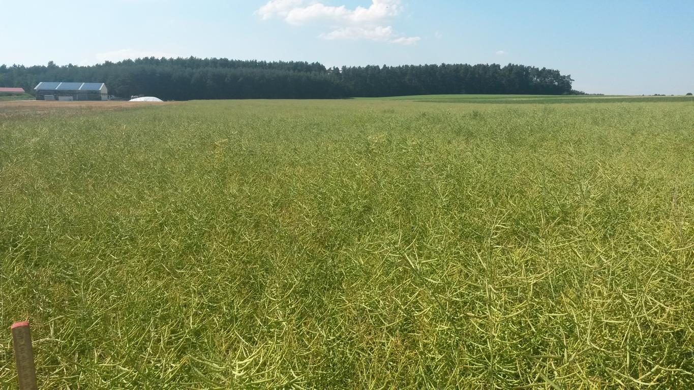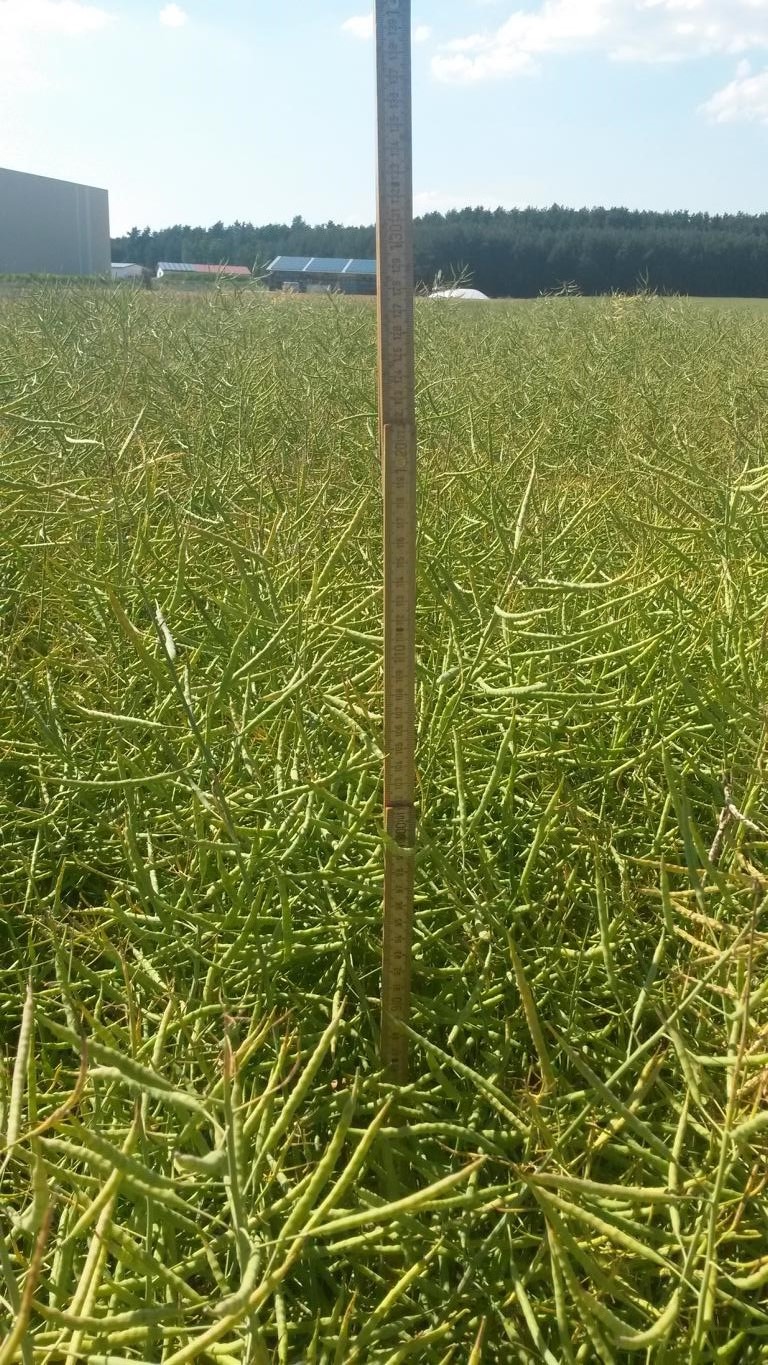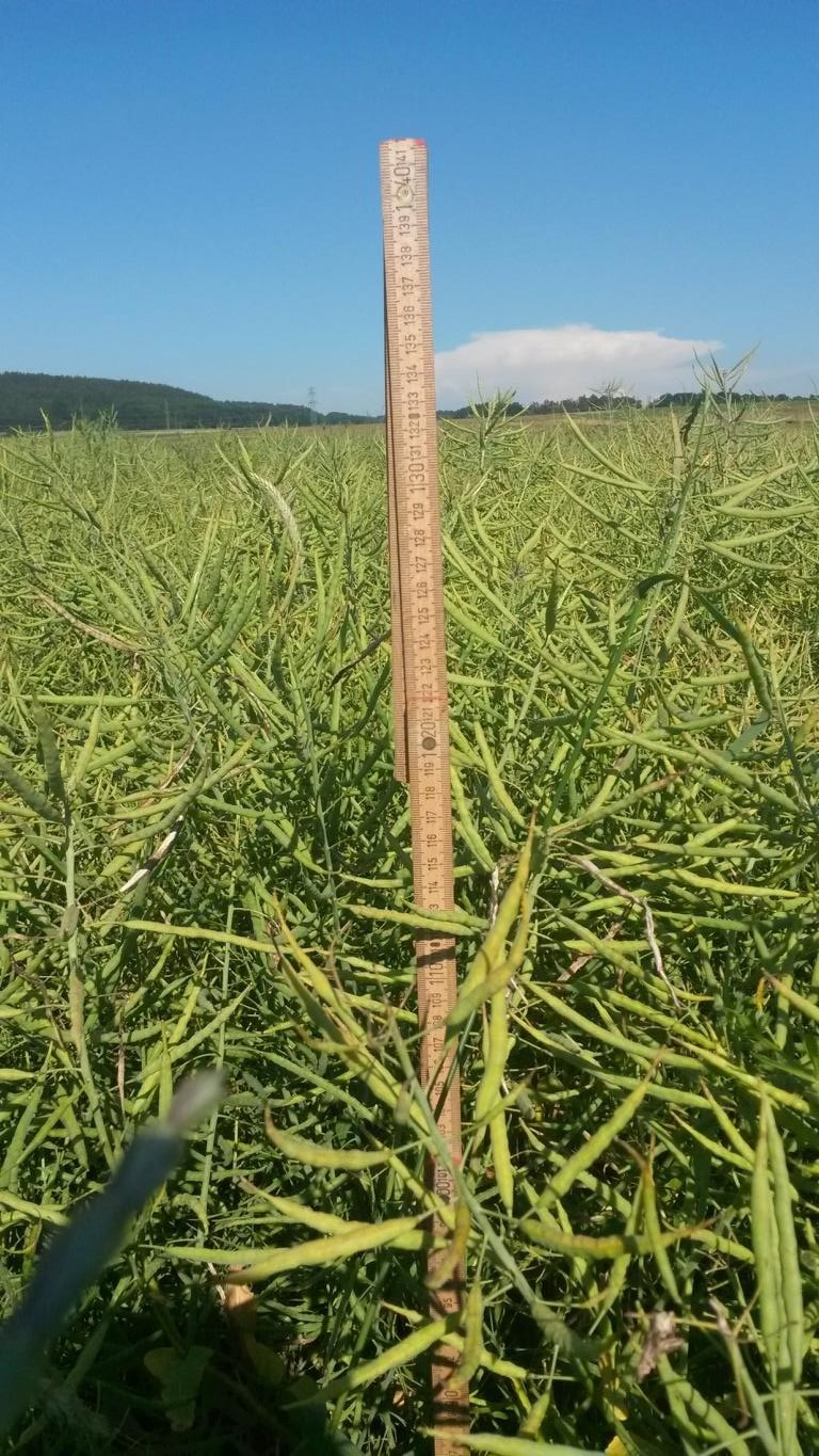 Im vergangenen Jahr ging der Raps bei mir aber erst ende Juni liegen, wo der erste Regen seit drei Monaten gekommen war, erst ein bisschen, dann mit jedem Schauer mehr und mehr bis er schlussendlich platt auf dem Boden lag...Beim Dreschen gabs quasi keine stehende Stoppel mehr, so flach....