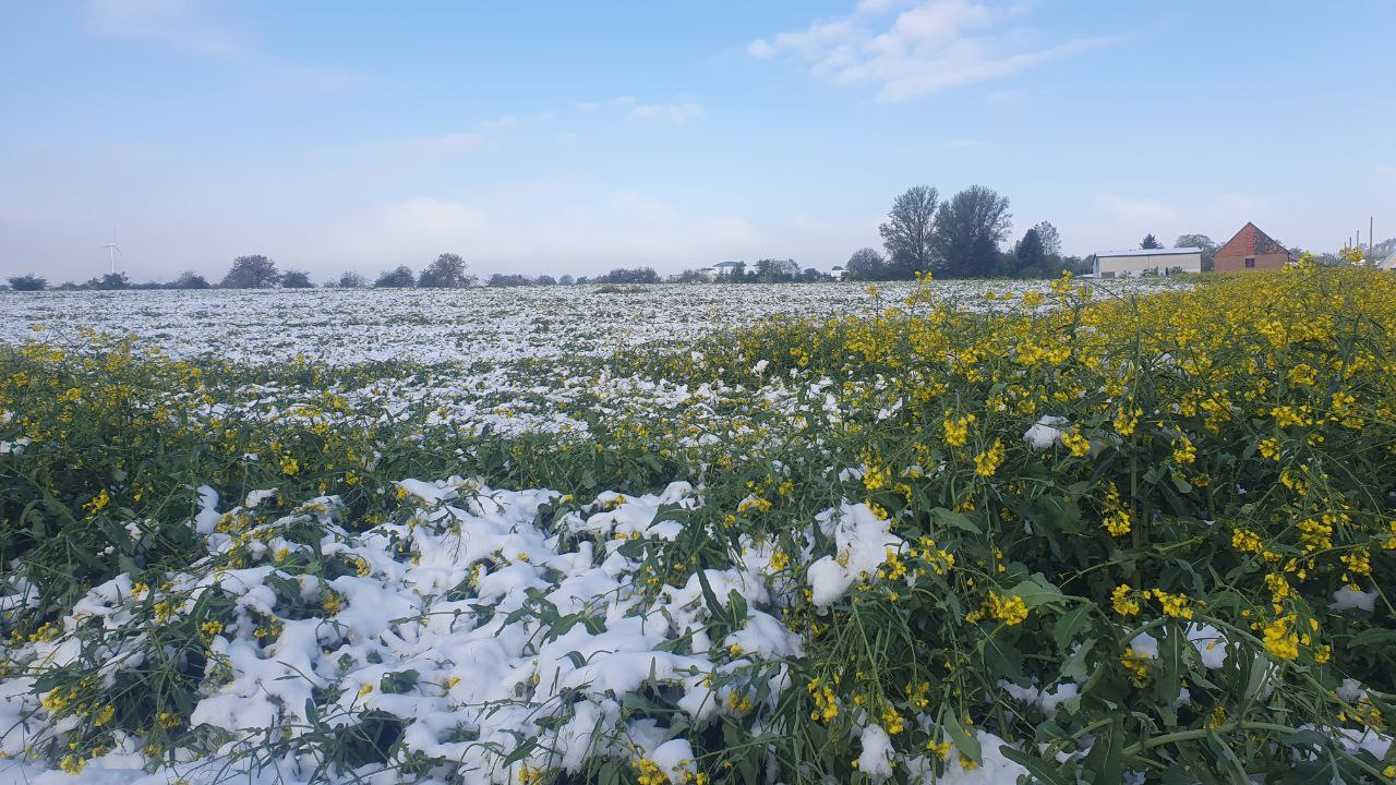 Da hab ich was. Vorne ein frühgedrillter irgendwas und dahinter ein Archivar von meinem Kollegen. Dazwischen liegt ein Grasweg. Allerdings war ich seit heute morgen nicht mehr dort, kann also nichts dazu sagen oder zeigen, inwiefern er sich bis jetzt wieder aufgerichtet hat.