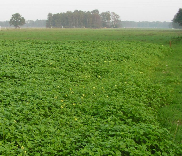 ich wundere mich über große Flächen in Rapsfeldern die derzeit gelb blühen. Die Pflanzen sehen aus wie Raps, die Blüten sind gelb nur die Aufwuchshöhe ist geringer und die Flächen blühen nicht so dicht. Es betrifft immer nur Teilfächen oft Ost- oder Südhangkuppen.