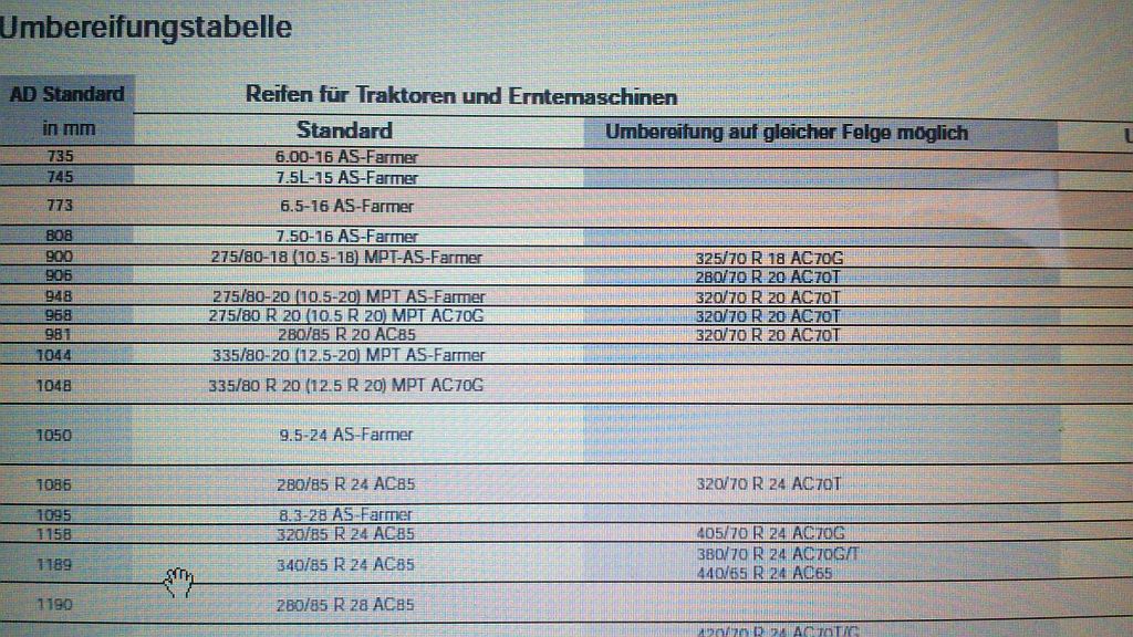 Wenn wir mal davon ausgehen dass dieser Reifen von der Voreilung her passt, sollte ein 380/70R24 oder ein 440/65R24 jeweils kompatibel sein. Nach meiner alten Michelintabelle geht auch der 440er zur Not noch auf die 12" Felge, das müsste man markenbezogen checken... und sicherheitshalber nochmal die Abrollumfänge vergleichen!