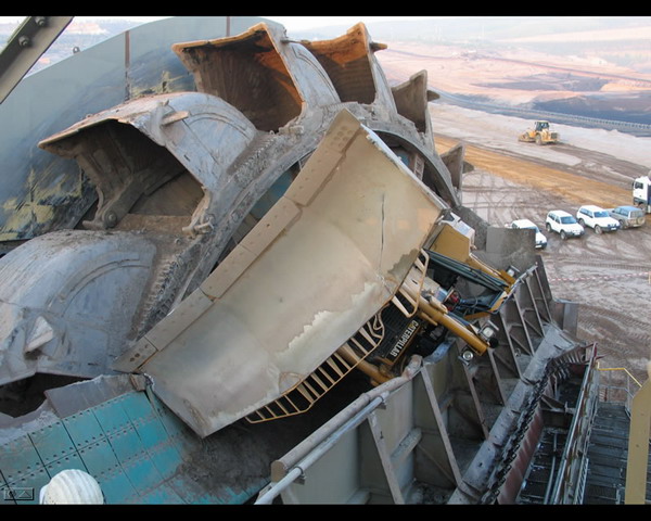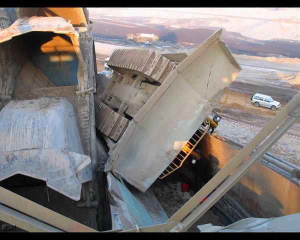 Und ja, die Raupe hat sich in dem Schaufelrad verhackt und is mit rauf gezogen worden.