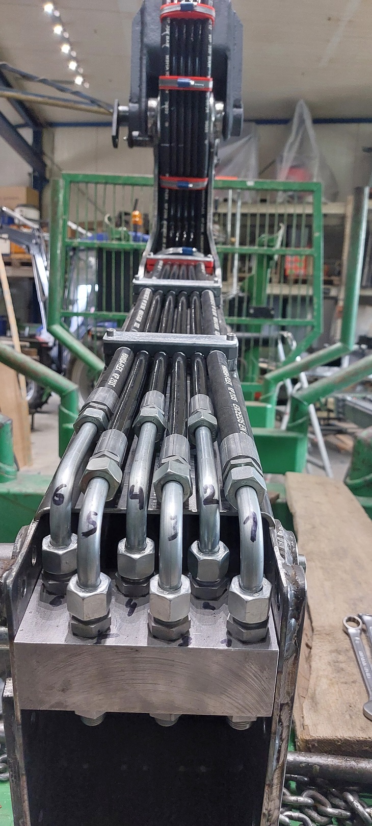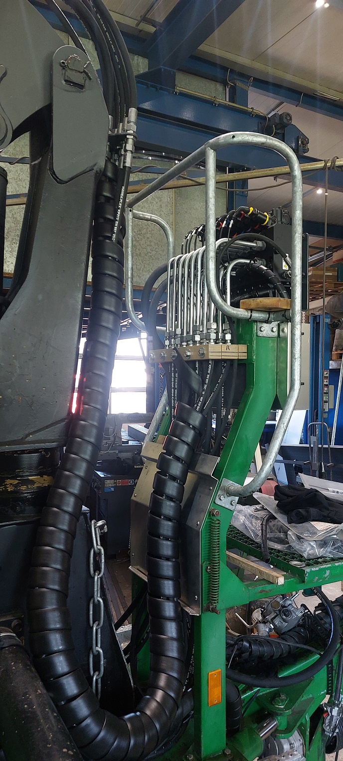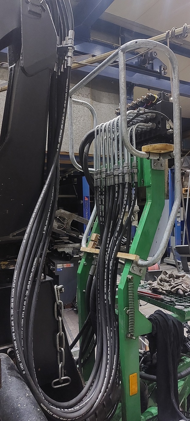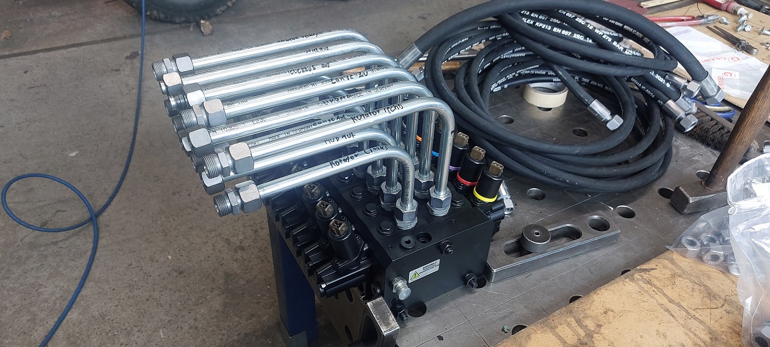 Nachdem die Mechanik mal so relativ fertig war, gings weiter mit der Verrohrung und Verschlauchung der Hydraulikfunktionen.