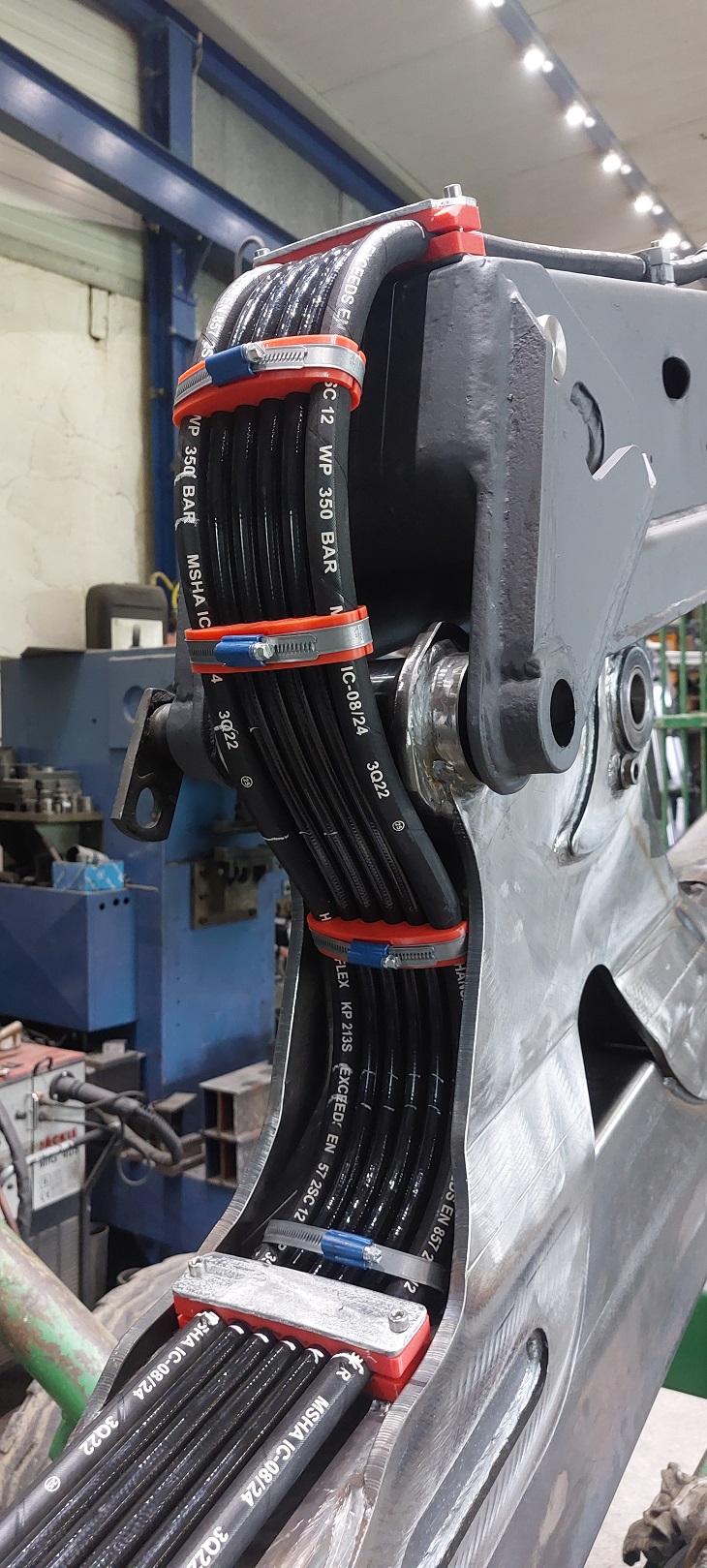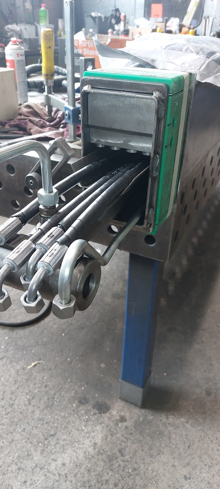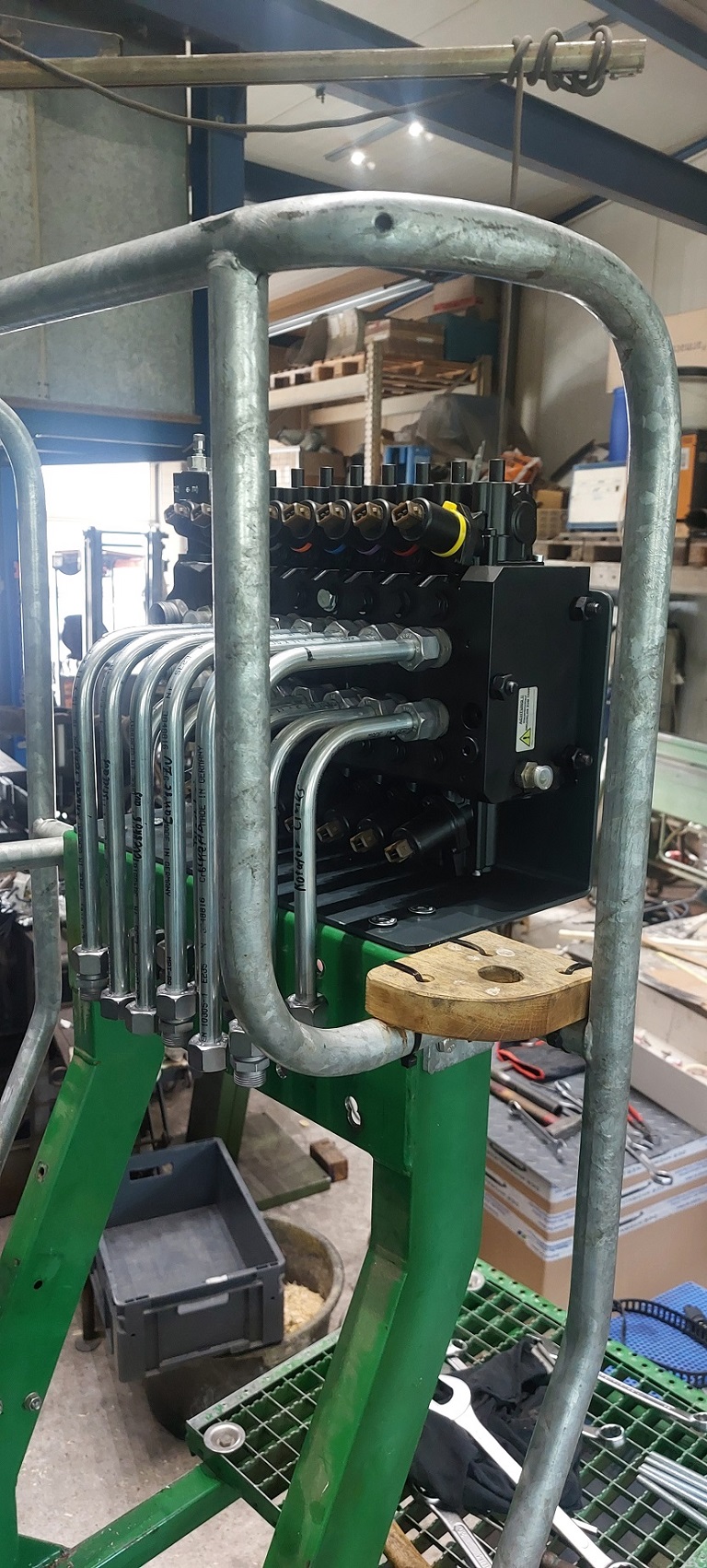 Nachdem die Mechanik mal so relativ fertig war, gings weiter mit der Verrohrung und Verschlauchung der Hydraulikfunktionen.