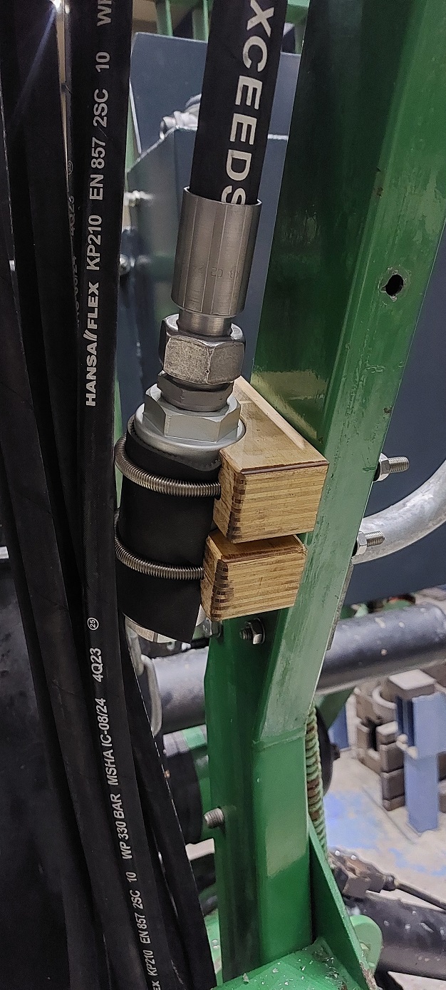 Die Schlauchverlegung und die fertige Schlauchklemmung im Gelenk