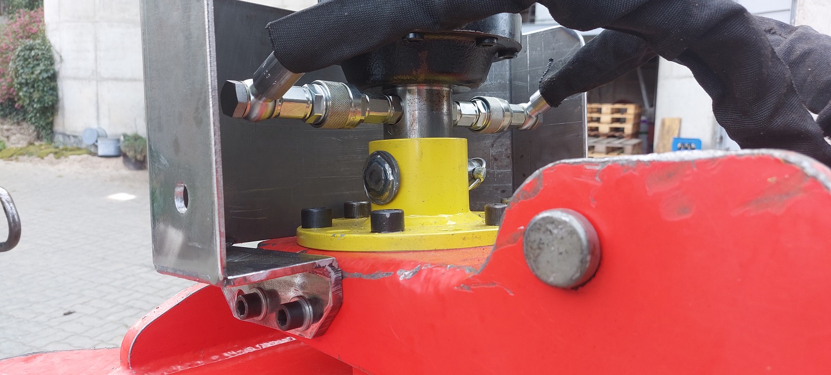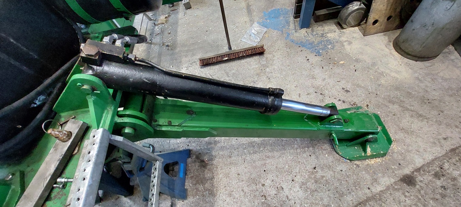 Hier der Ausschub mit montiertem Zylinder, Schläuchen und dem "Umleitungsblock" den ich in nem vorherigen Beitrag schon gezeigt hab.