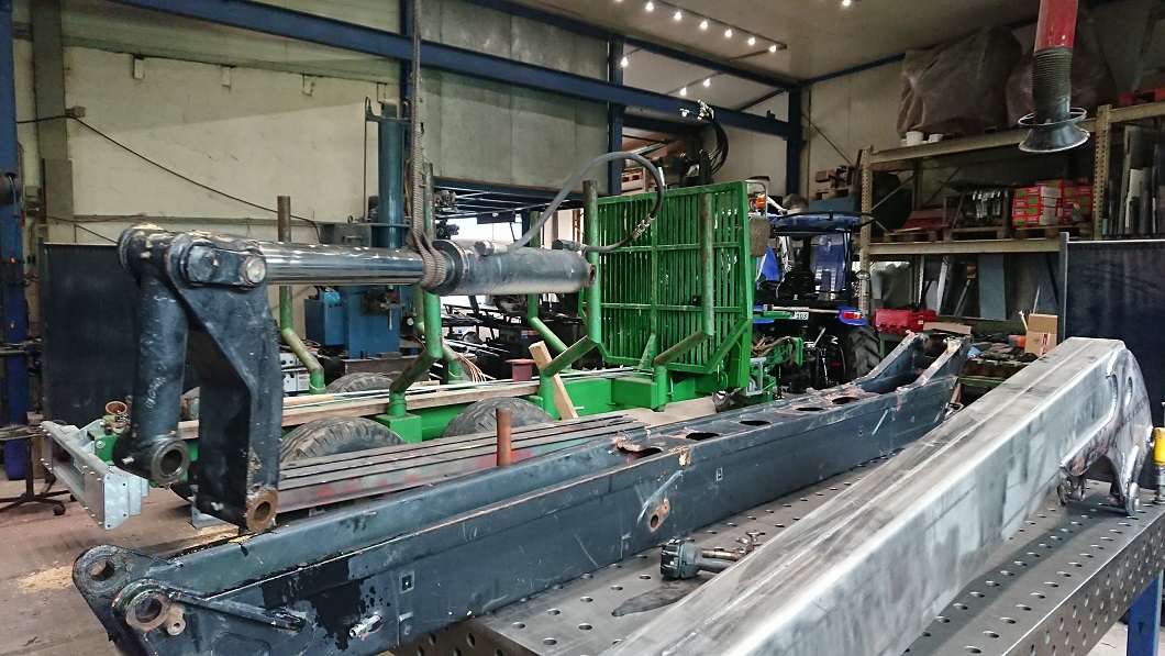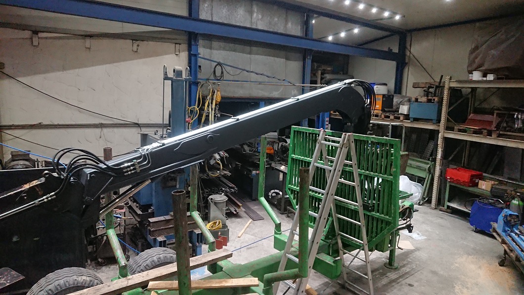 Ach ja, von den Wägen haben wir noch 2 weitere gebaut, einen baugleichen, ausgestattet mit einem 7,7m Perzl Kran und einen etwas kleineren mit einem Krüger "Mistbagger" drauf (wollte der Kunde unbedingt so haben).