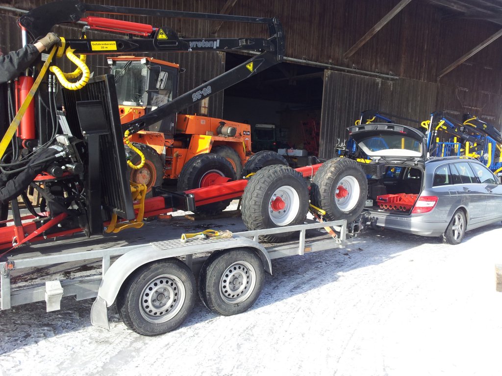 Überleg dir noch, ob du nicht auch eine Kranwinde montierst. Die ist für mich eine große Arbeitserleichterung, gerade für den leichteren Krempel! Zumal die auch ordentlich zieht. Durch die hohe Montage bleiben die Stämme kaum an Stöcken hängen.