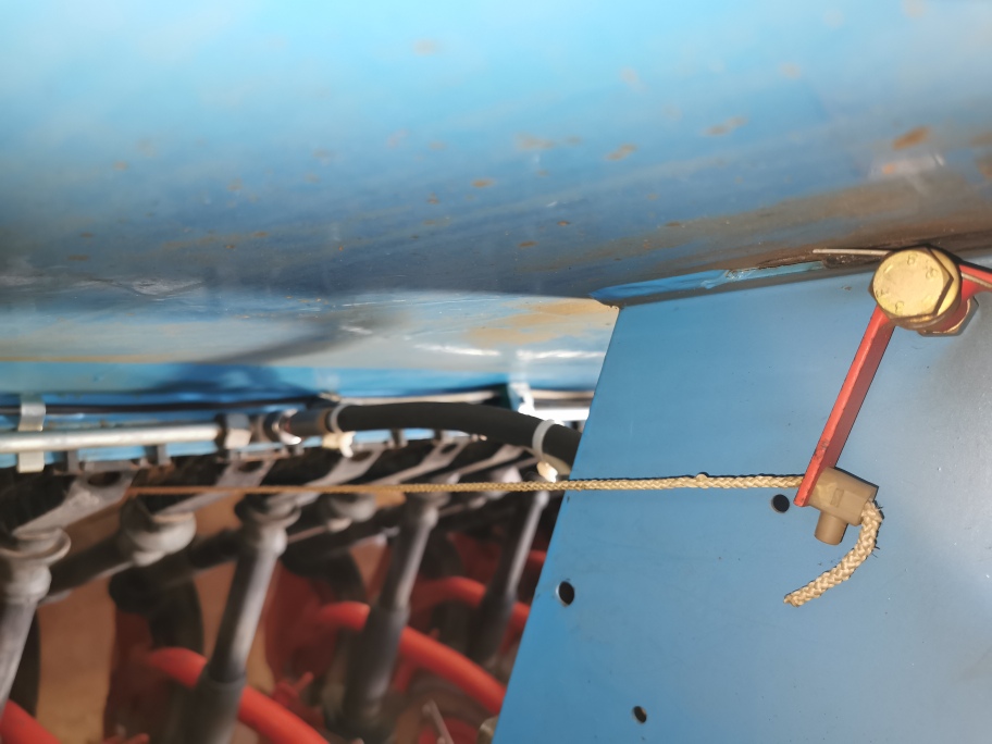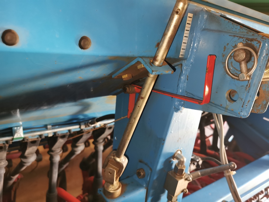 Die Sämaschine wird von der Walze des tragenden Kreiselgrubbers angetrieben und hat keinerlei Elektrik/Elektronik abgesehen von der Beleuchtung. Zum Abdrehen kann man einen Splint aus einer Welle ziehen, so daß der Antrieb zwischen Walze und Getriebe getrennt ist. Dies kann man auch am Vorgewende nutzen, um Pflugfurchen zu begradigen oder ähnliches.