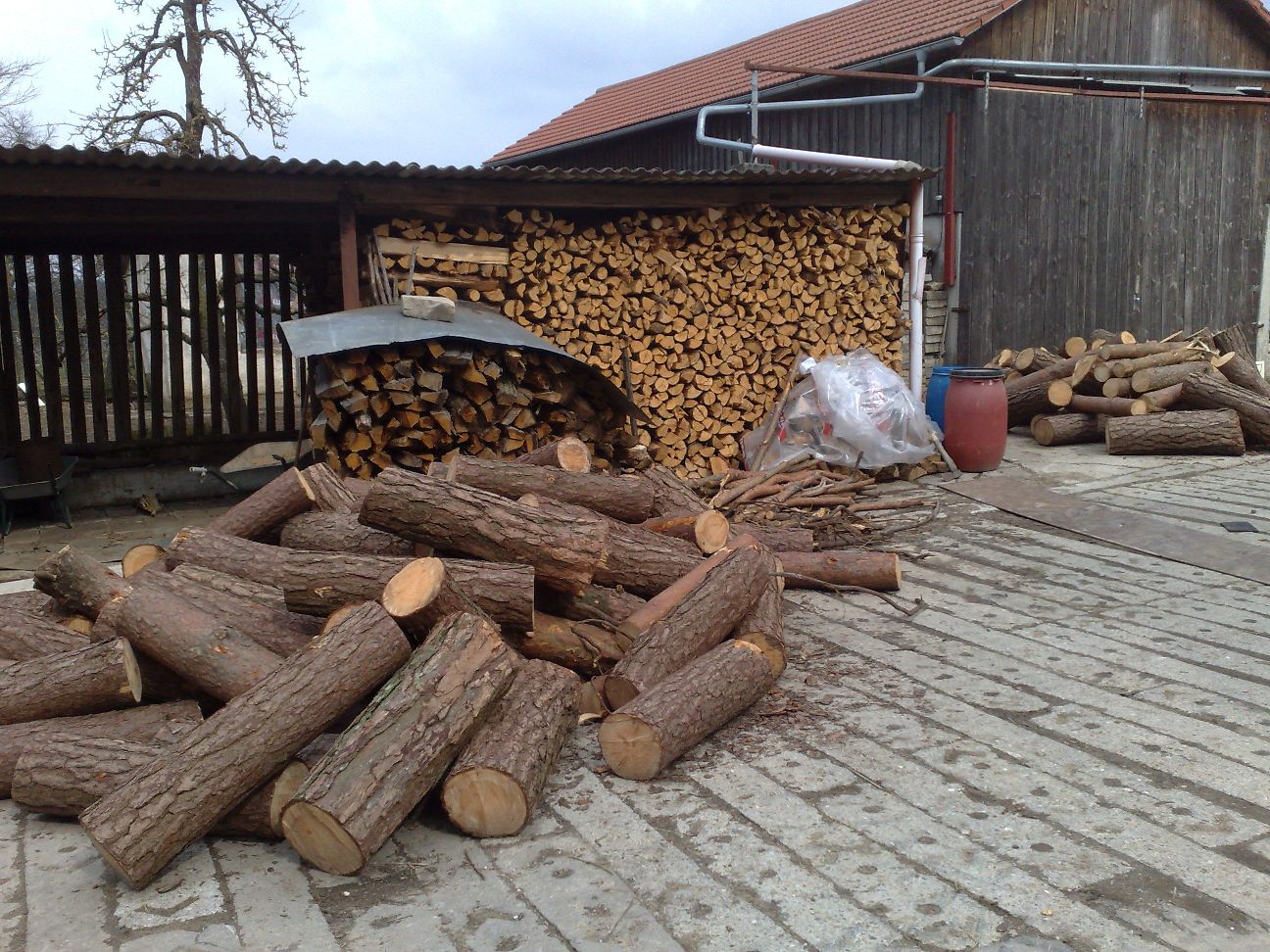 Mein Opa (77) und ich (27) machen pro Jahr 50 Ster raus. Baum umsägen, ausasten und mit der Motorsäge auf einen Meter kürzen. Von Hand zum Weg auf den Hänger schleppen. Zuhause abladen und stapeln. So geht das ca. 15 Samstage. Opa geht zusätzlich Mo-Fr alleine ganztags in den Wald. (Nicht schlecht oder?)
