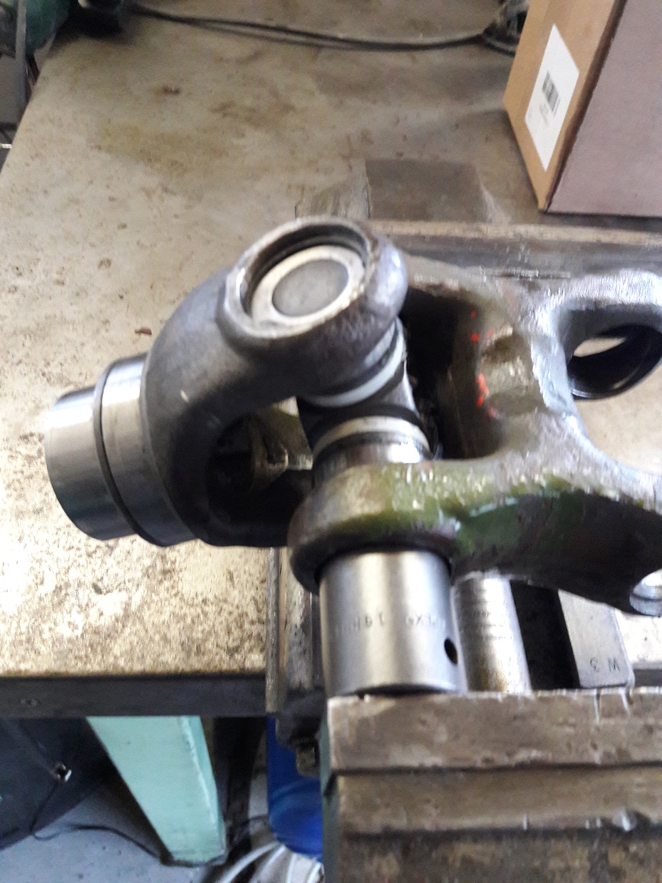 Beim Abbauen der Vorderachse habe ich dann gesehen was da alles defekt ist. Spiel an allen Achsschenkeln, Kreuzgelenke ausgeschlagen und vor Allem die eine Gehäusehälfte komplett gelöst. Grund dafür war ein komplett wegerodierstes Kugellager, das die Vorderahcse vorne lagert.