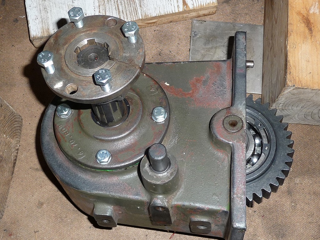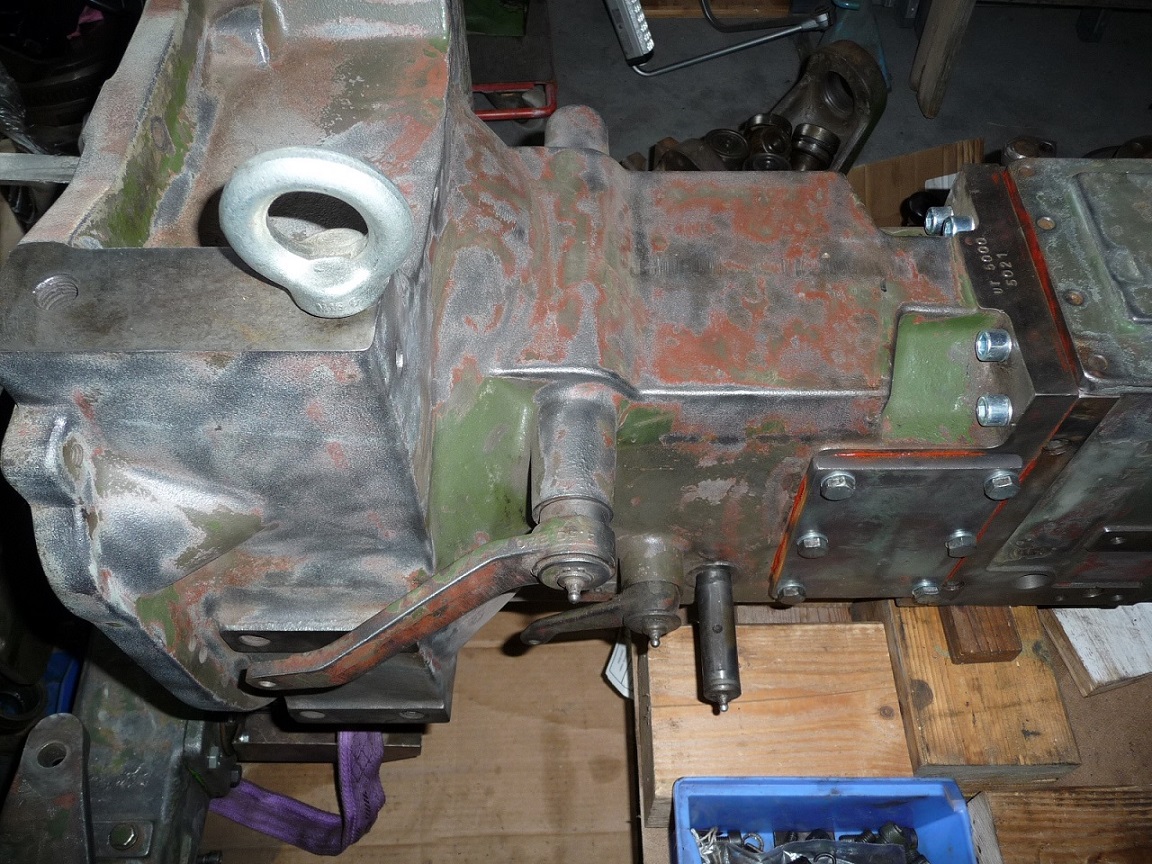1) Getriebe, Rumpf Ich habe das Kupplungsgehäuse wieder angebaut. Darin hat es noch ein kleines Getriebe für die Zapfwelle nach der Doppelkupplung. Die Ausrücklager habe ich drin gelassen, die sind so na na .... aber werden schon noch eine Weile laufen... Weiter habe ich alle Lager (bis auf eines - Ersatzteilliste stimmt nicht!...) getauscht. Alle DIchtungen wurden auch neu.