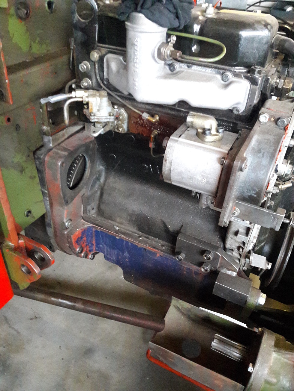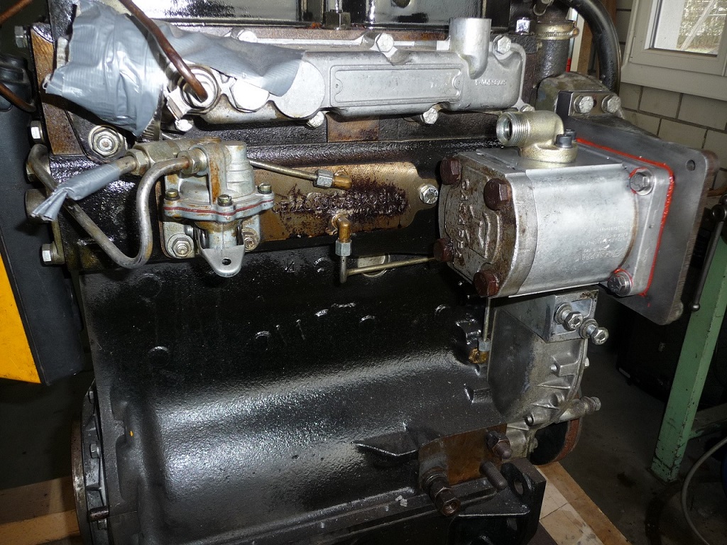 Motor -Der Motor ist zusammen, wurde ölwannenseitig angepasst auf Schilter UT und an diesen Stellen mit einem neuen Dichtsatz versehen. Ebenfalls wurde die Hydraulikpumpe angebaut und die Mitnehmerscheibe erneuert und der Motor ans Getriebe gebaut.