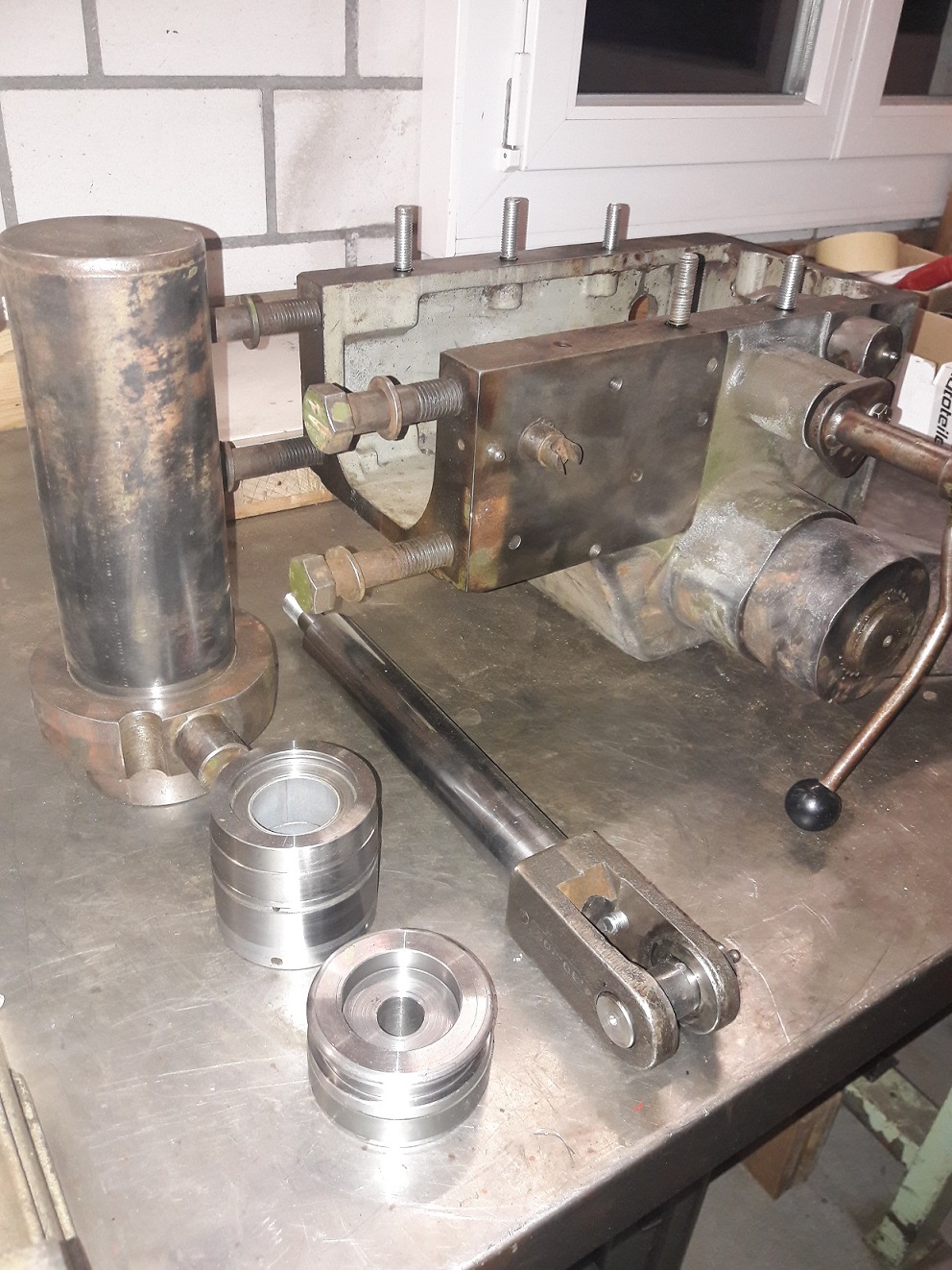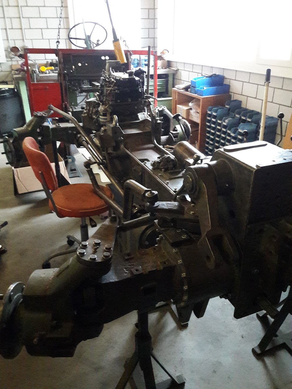 Lenkung/Antrieb Das Element, bei dem man zwischen 4-Rad und 2-Rad Lenkung umstellen kann, musste geschweisst, angepasst, neu gelagert werden. Ansonsten Schubstangen gereinigt. Vorerst bleiben die Gelenke drin und bekommen dann nach dem Lackieren noch neue Gummis.