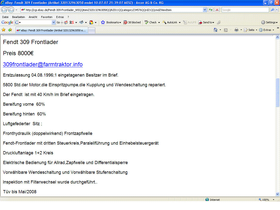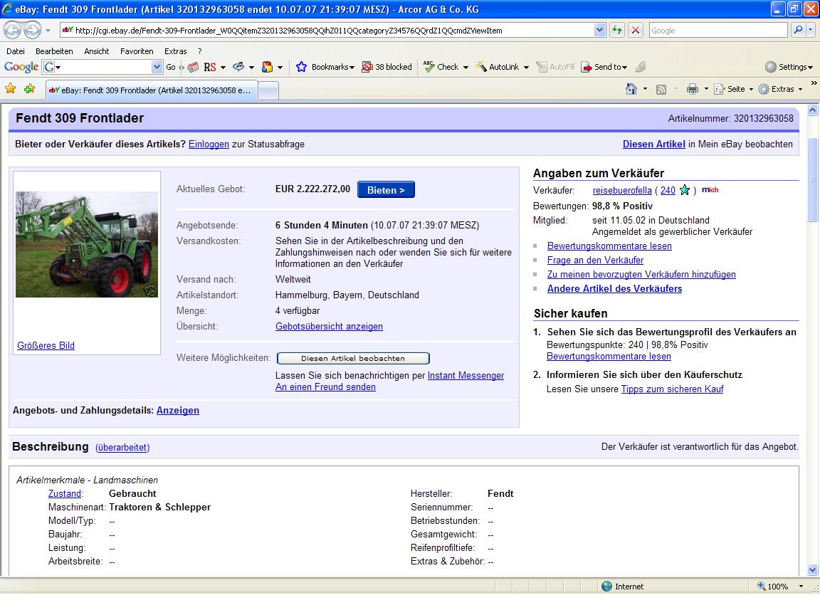 In dem Angebot stand nämlich, dass der Artikelstandort Petersberg ist. Das ist nur wenige Kilometer von meinem Betrieb entfernt. Ich könnte den Traktor also auch abholen, wenn es möglich ist. Und wenn ich nicht zufrieden bin, können sie den Traktor wieder nach 5 Tagen abholen, oder ich bringe ihn zurück.