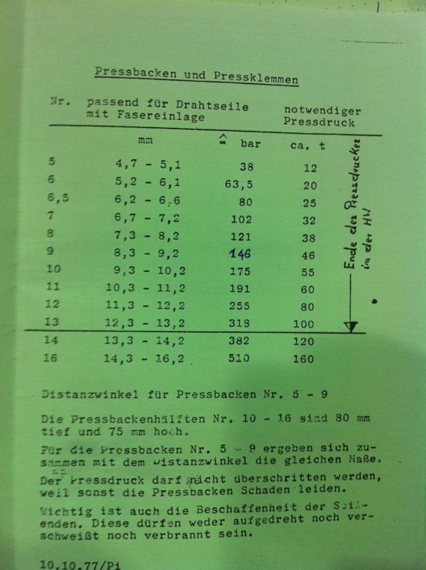 ich hab mir ne dicke Stahlplatte besorgt und da dann ähnlich wie bei den gekauften eine Führung für die 2teiligen Verpressbacken angeschweisst. Mit der ganzen Mimik fahre ich dann zu einem Bekannten Schlosser und seiner 70 to presse. Allerdings muss bei einem Kernstahlseil immer eine Hülsengrösse größer genommen werden also 10er Seil bedeutet 11 er Alu Hülse. Da ist dann die Wandstärke nach dem pressen dicker.