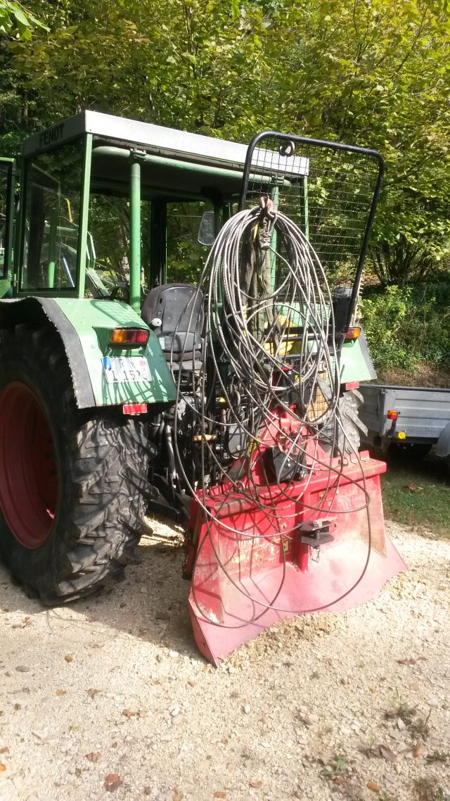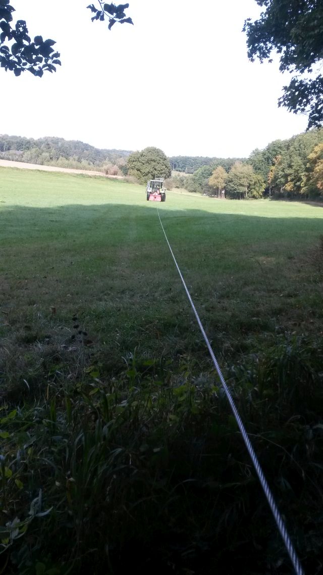 Beim Zusammenbau das Seil entgegen dem Uhrzeigersinn vorerst 4 Lagen aufgewickelt. Fürs komplette Aufwickeln brauch ich einen zweiten Mann, wir ziehen damit das Eigengewicht des Traktors heran. Funktionstest des Brems/Kupplungshebel war gut und leichtgängig.
