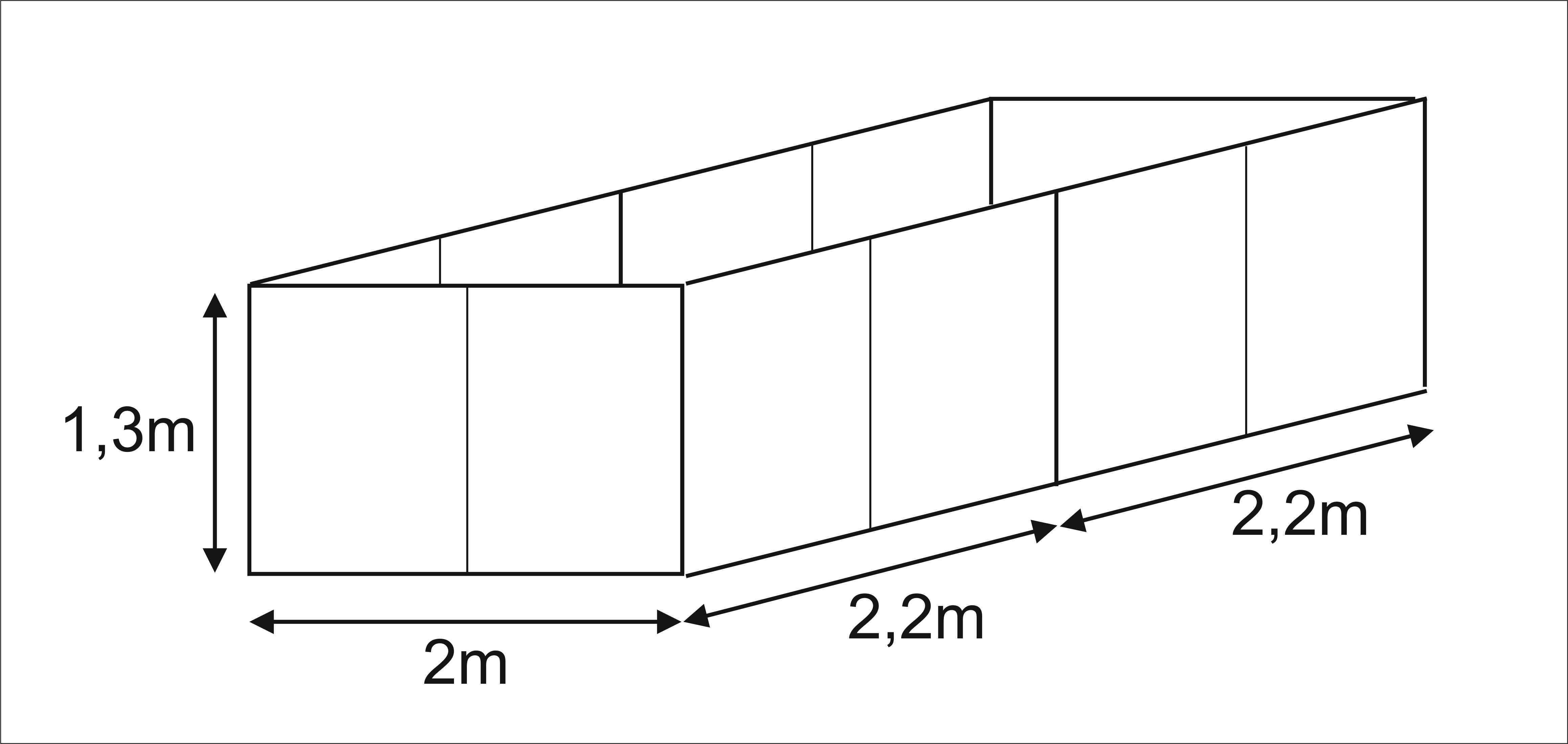 Vorne und Hinten 2,0m x 1,3m, ebenfalls 1x mittig gestützt.
