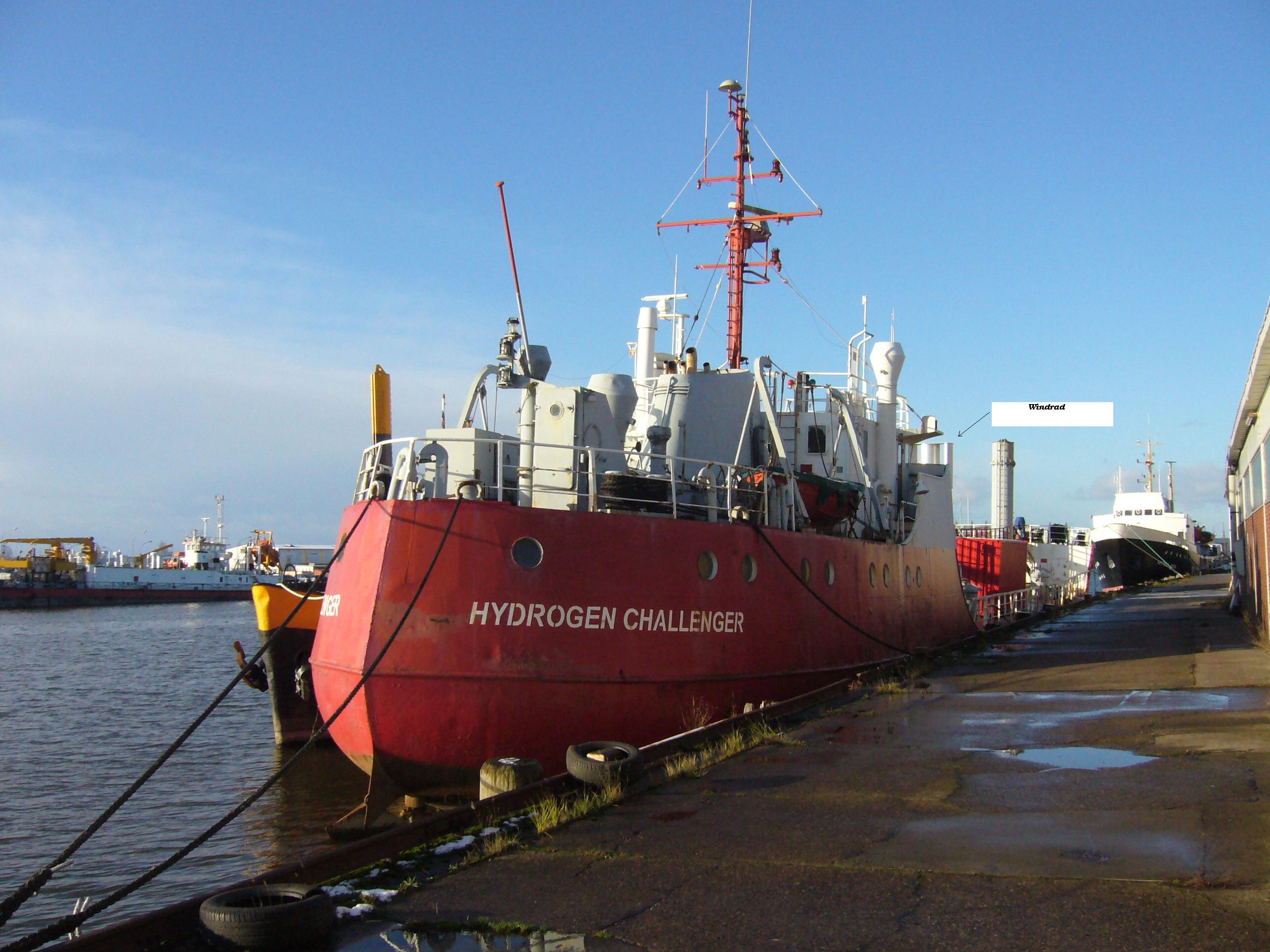 Unten im Bild ist ein ehemaliges Versuchsschiff zu sehen. Im Hintergrund