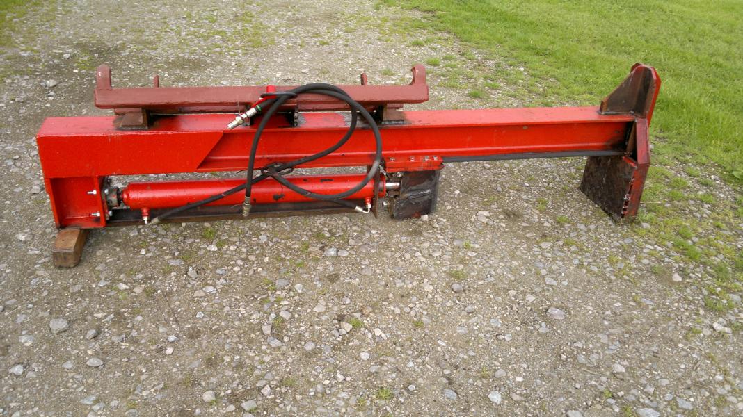 Nun ist mir ein alter selbstgebauter Spalter mit Stahlträgerbasis zugelaufen und ich habe den zum Ausprobieren an den Radlader montiert.