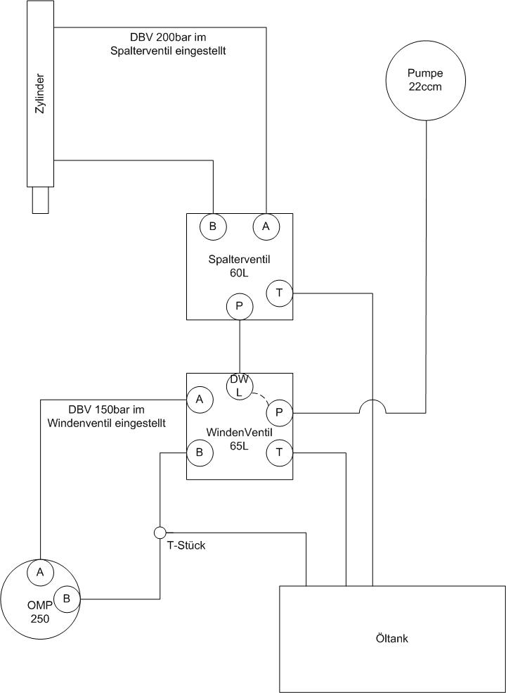 Kugelblitz hat geschrieben:wenn ich mich jetz nicht täusche, müsstest vom Tankanschluss des Spalterventils, in den Steuerblock von der Winde (in den P-Anschluss) und dann erst zum Tank.