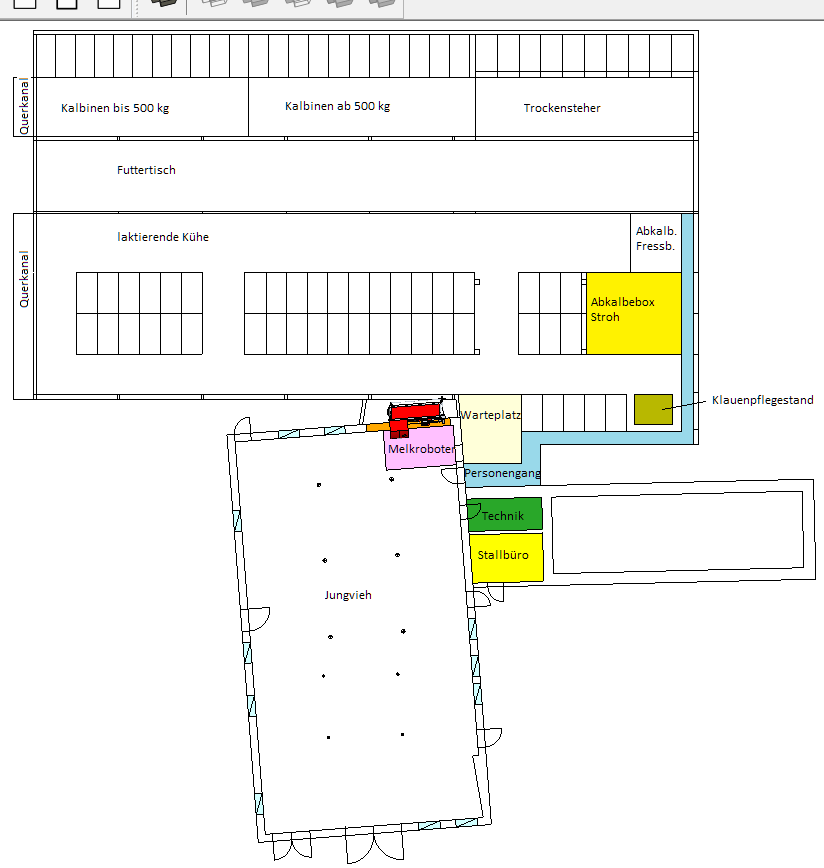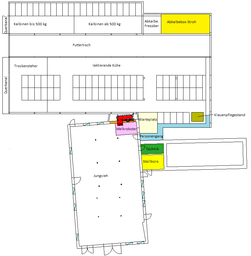 Bei mir kalben die Kühe momentan in der Liegebox bei den Trockenstehern, da ich keine Abkalbebox habe. Ich möchte nun einen Melkroboter und eine Abkalbebox einbauen, jedoch wäre die Abkalbebox auf der anderen Seite vom Futtertisch wie die laktierenden Kühe. Das heißt die Abkalber müssten den Futtertisch queren. Seht ihr hier ein Problem?