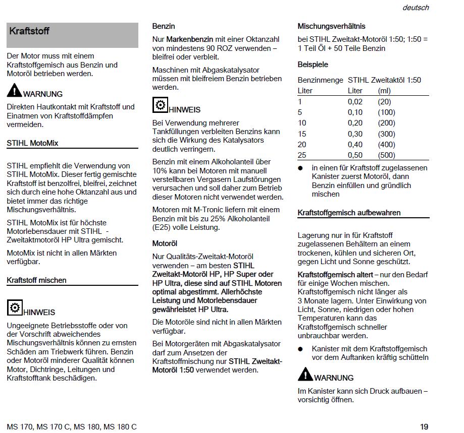 Stimmt das ? Muss ich jetzt mit 2 Kanistern rum laufen ? Weil mische immer normal Benzin mit dem roten Öl von Dolmar ausen Baumarkt.^^
