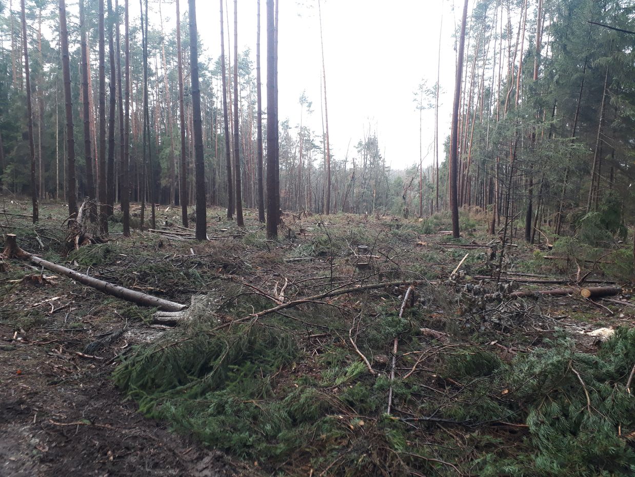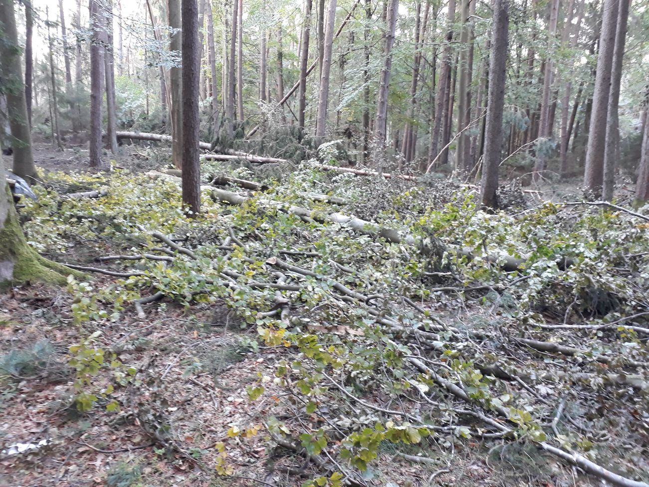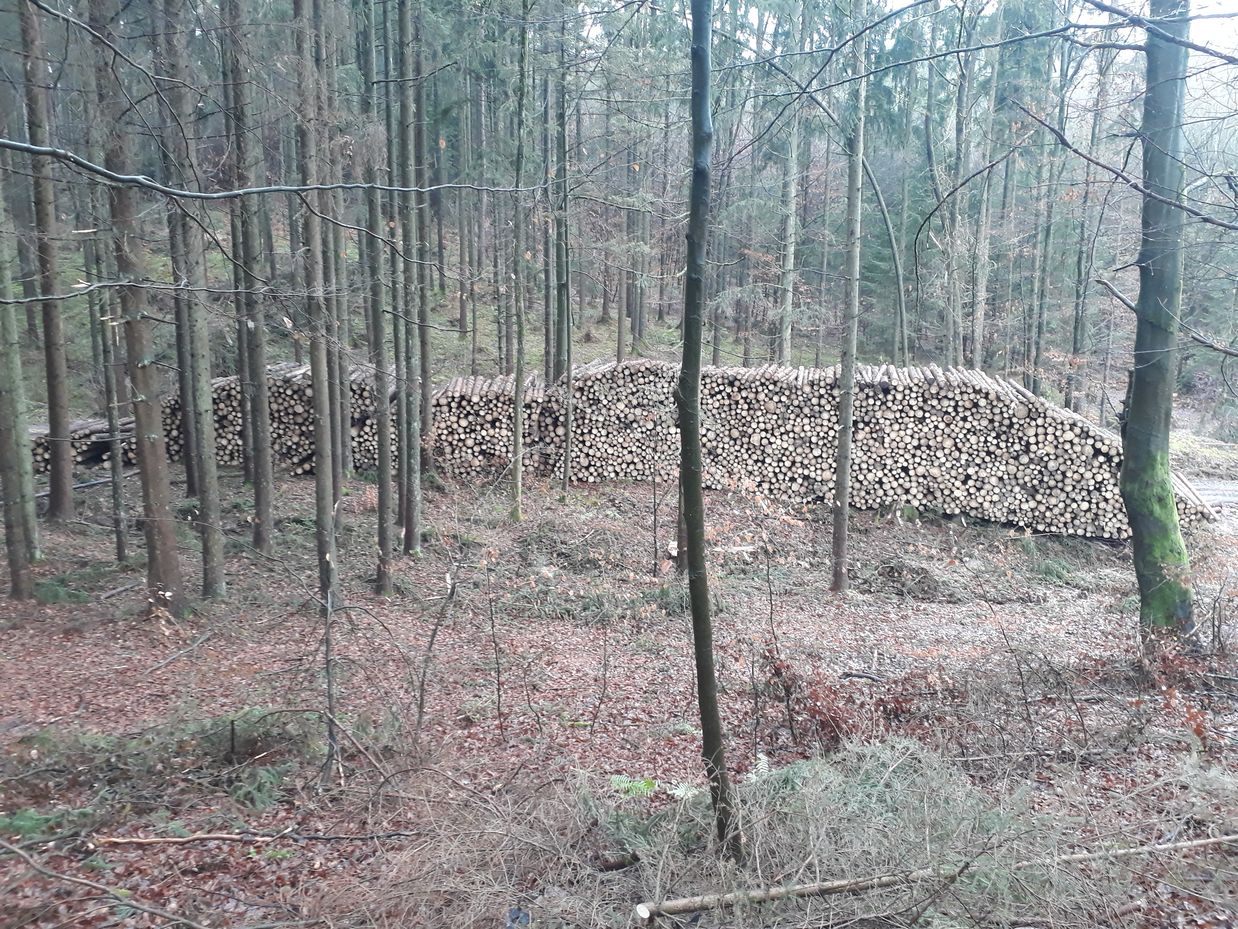 keinen Unterschied, ob Fichte-Mono, Douglasie, Buche, Eiche, Mischwald oder sonst was. Alles wird umgeblasen. Alles vertrocknet.