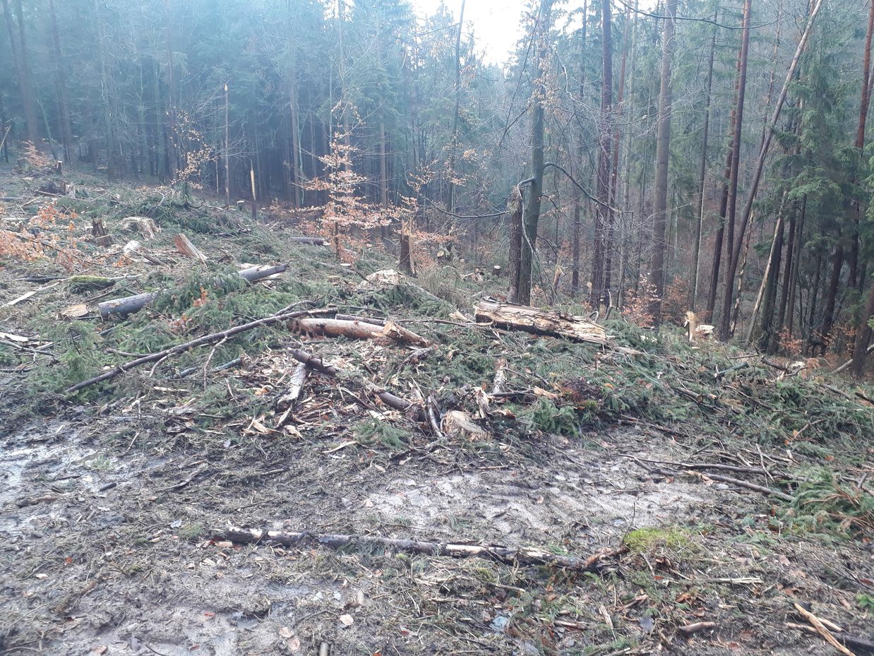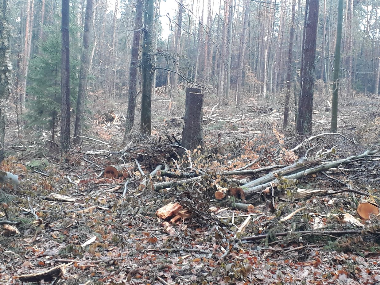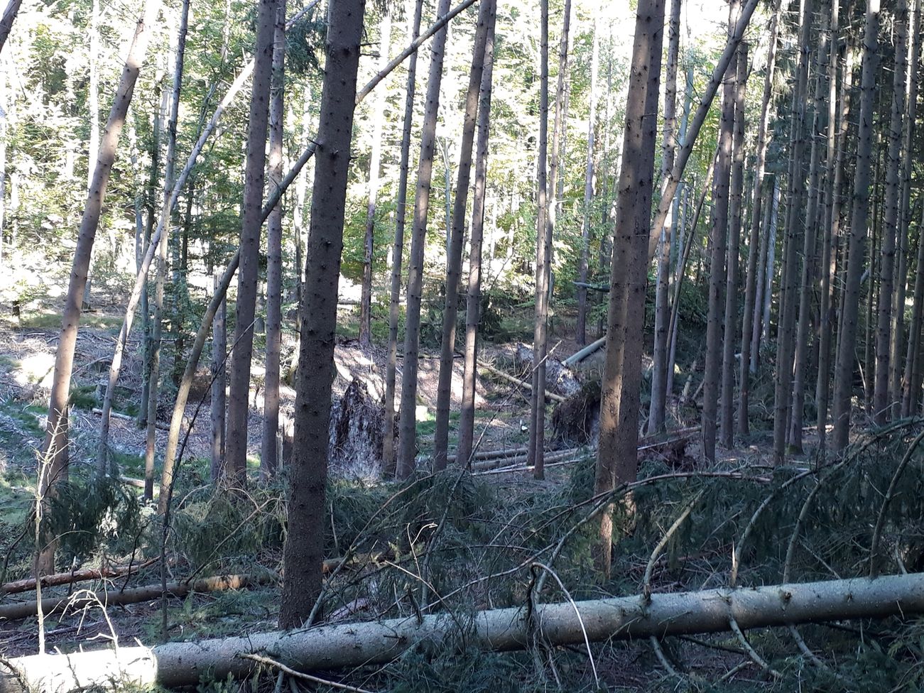 keinen Unterschied, ob Fichte-Mono, Douglasie, Buche, Eiche, Mischwald oder sonst was. Alles wird umgeblasen. Alles vertrocknet.