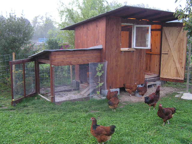 Schau mal ob du nen alten bauwagen bekommst, haben wir auch. wir haben unseren umsonst bekommen, mussten den nur abholen, hatte keine achse drunter. Haben den dann neu angestrichen und fertig. Da war noch nen alter Schrank drin, den haben wir als Lgenester umgebaut, ne Dachrinne als Futtertrog und dann baust du dir noh einen Wiem und fertig ist der Stall.