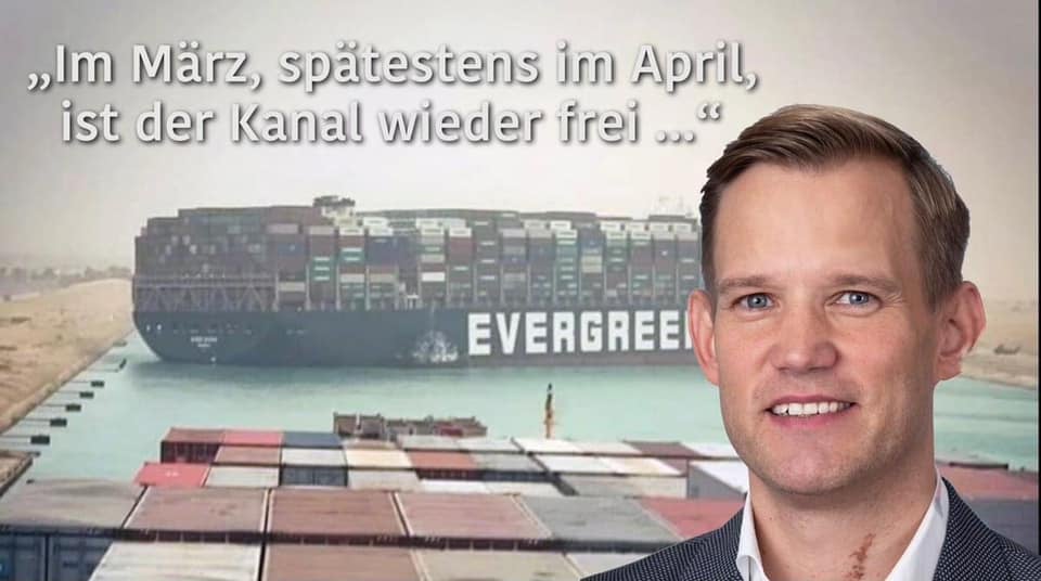 Ich selbst glaube nicht daran, dass diese Havarie ein Unfall ist. Die Folgen werden Europa noch nicht durchschütteln aber es wäre gut, das Unglück als Warnung zu verstehen. Als Warnung eines übermächtigen Handelspartners, der zeigen will: 'Schaut her, so kann es Euch gehen. Ich diktiere die Konditionen. Wenn Ihr nicht spurt, seht her, was „passieren“ kann.'