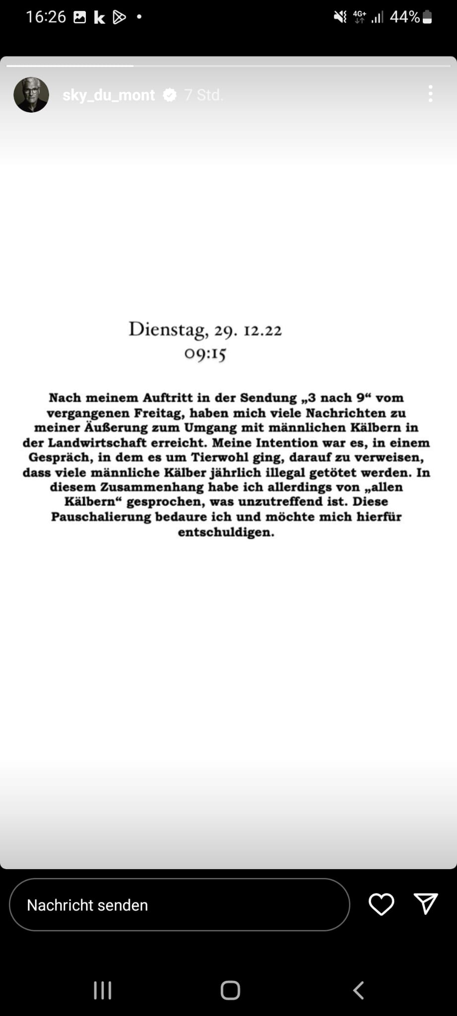 Der Dupont hat behauptet, das ALLE Kälber umgebracht werden.