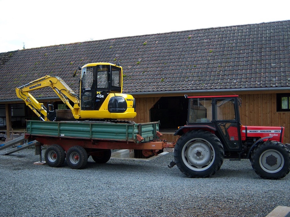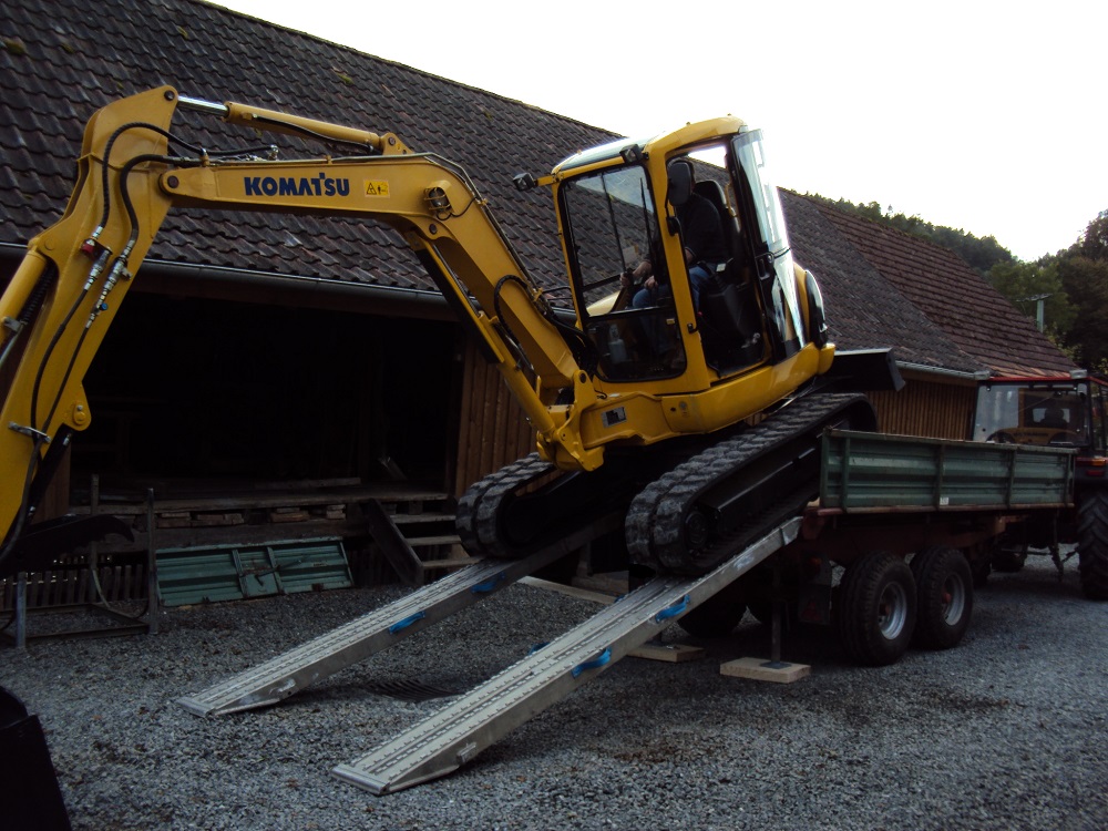 min vier für den Bagger und zusätzliche für das Zubehör, besonders bei Fahrten mit offener Bordwand.