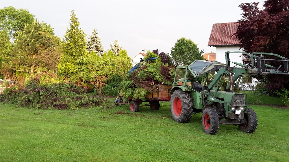 Ich sollte ca.100m Thujahecke roden. Stammstärke 10 cm aufwärts.Nun stellt sich die Frage wurzen Thujapflanzen eher in die Tiefe (Pfahlwurzel)oder eher flach??Ich wollte eigentlich die Stämme in 0,5m Höhe absägen und mit dem Schlepper rausreißen.