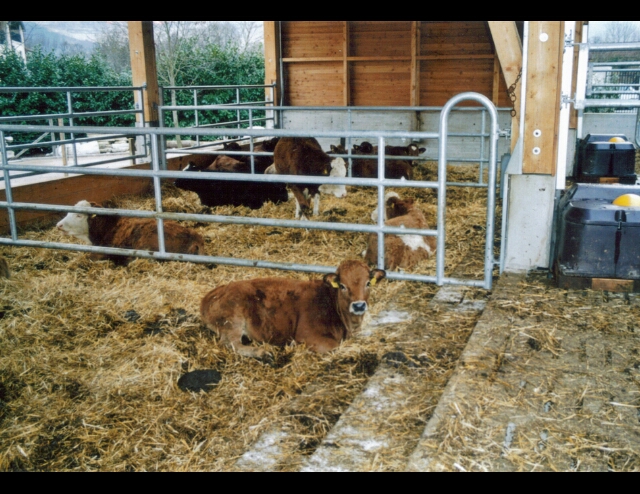 wir haben auch einen Tretmiststall für 140 Tiere, Buchtengröße 7 m x 5 m Liegefläche, 5 m x 4 m Fläche