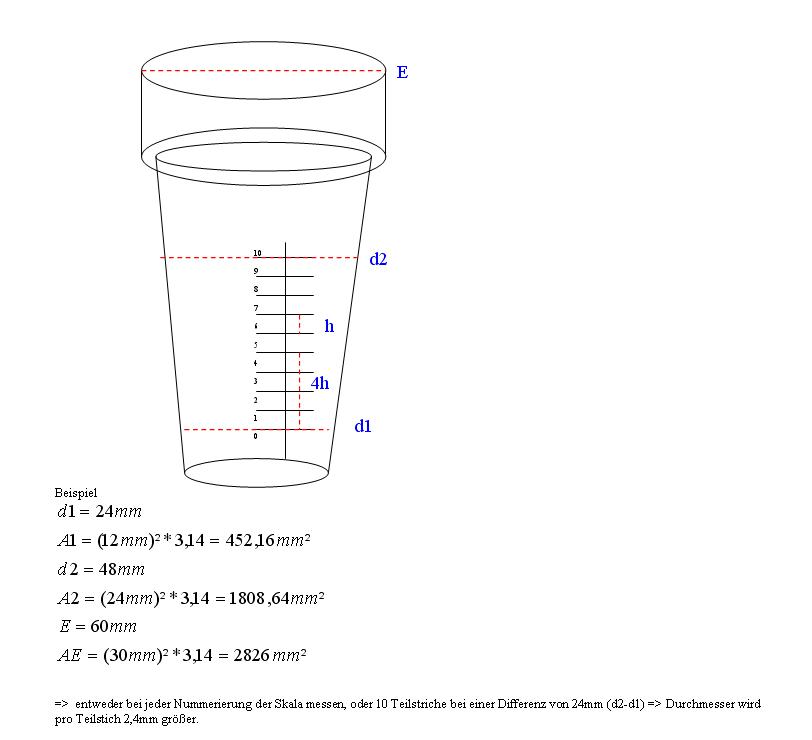 SHierling hat geschrieben:Ja. Das ist dann mal wieder ein Fall für ScheißeBinIchDoof ... Ich hab natürlich nur die konischen Regenmesser , die man immer als Werbegeschenke bekommt, und mir schon x komplizierte Rechnungen aufgemalt, wie man denn die richtige Skala hinbekommt. Dabei ist mm = mm - egal wie groß die Oberfläche ist, solange die Flasche gerade ist. Oh man. Warum einfach, wenn es auch kompliziert geht. Vielen herzlichen Dank für diesen praxisnahen Tipp, Du hast eine mittelalterliche Ex-Blondine sehr glücklich gemacht , ich schweiß eben noch ein altes Lineal ein, und dann steht das Ding.![]()