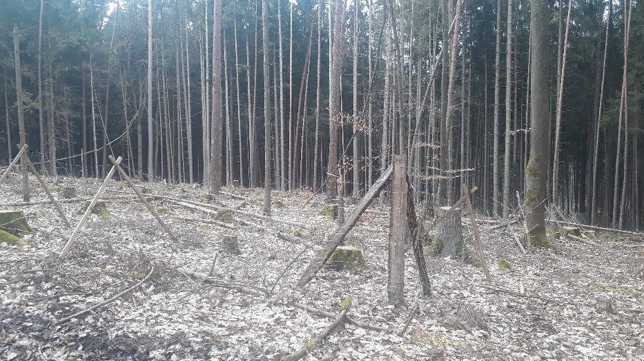 Hier meinte man, man müsse den Sturmschaden erst nach 10 Wochen beseitigen, als schon Stehendbefall aufgetreten war und von mir angemahnt wurde. Im September standen dann hier plötzlich 30 Käferleichen.