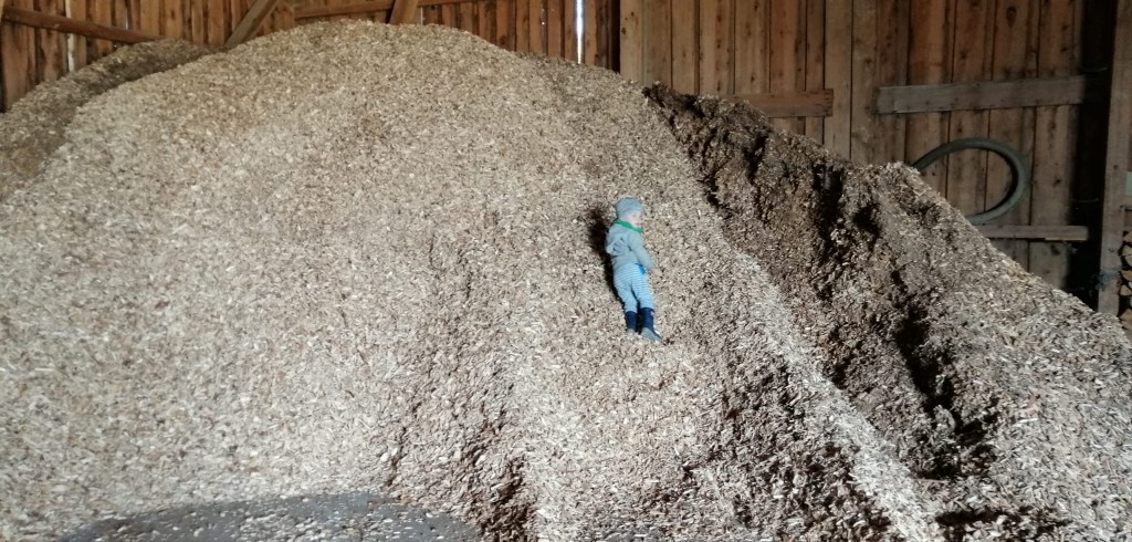 Hier noch ein Bild links die frischen Hackschnitzel. Rechts die vom letzten Jahr .