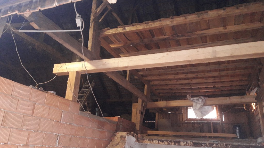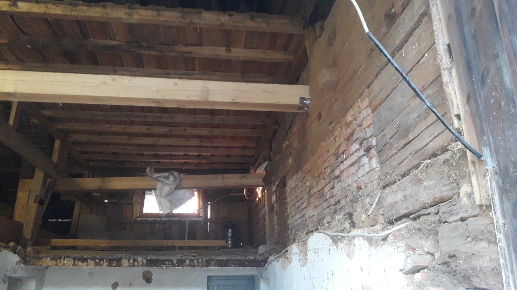Haben den Dachstuhl schon unterfangen und eine neue Mauer eingezogen . Die nächsten Tage kommt das alte Gewölbe runter . Bilder folgen die nächste Zeit.