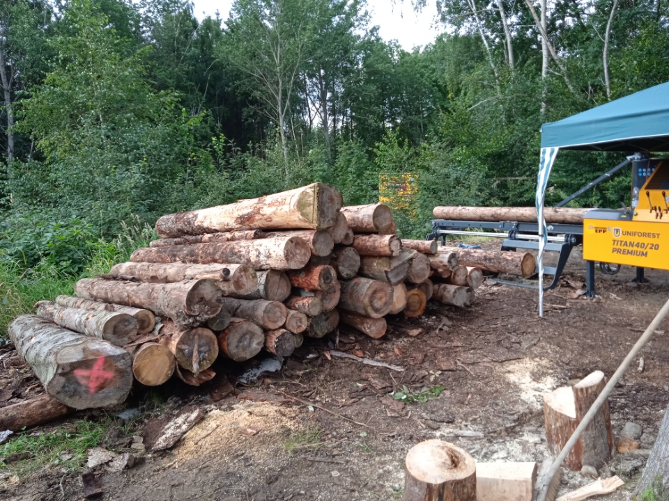 Ich habe in dieser Woche dem schlechten Wetter getrotzt und meine neue Errungenschaft ausprobiert. Ich habe aktuell leider keinen Stammheber zum Holz zuführen und musste auf ein altes Eisengestell als profisorium zurückgreifen.