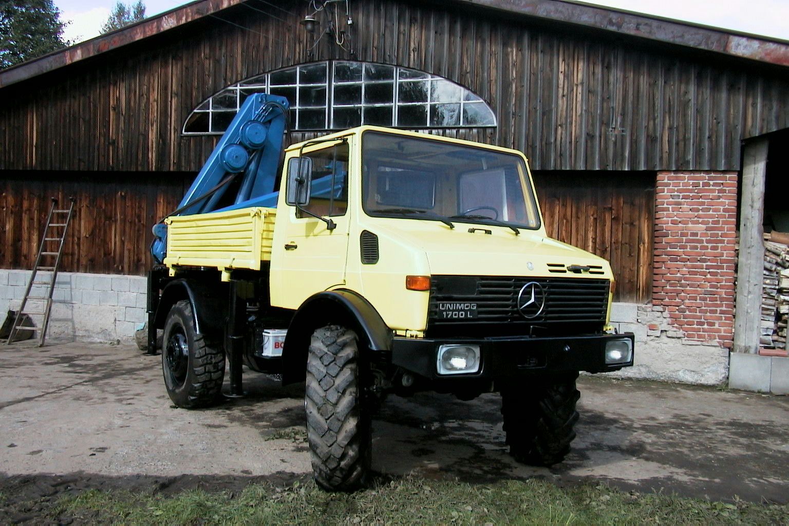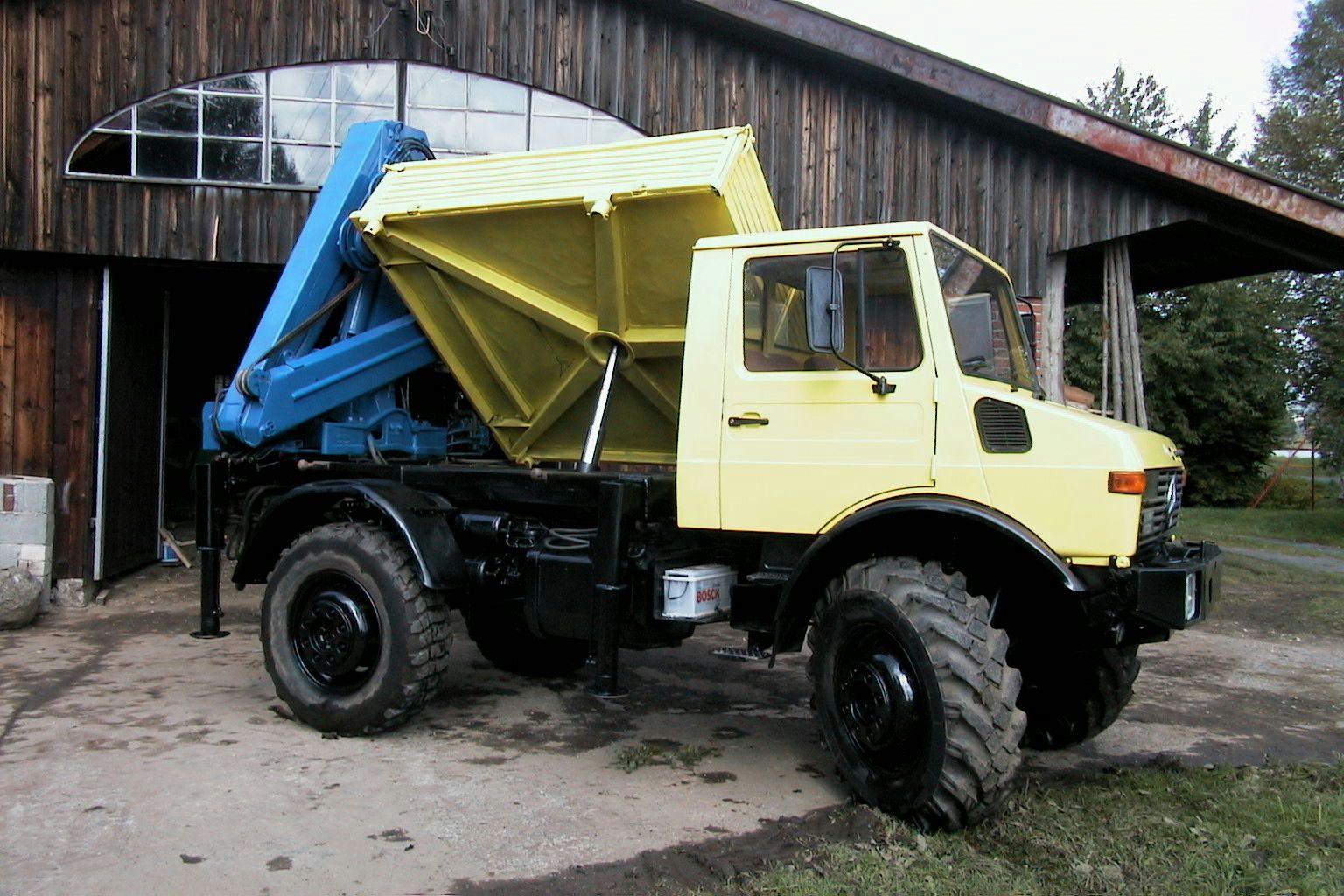 Da ein Rückewagen auch so um die 20T kostet bin ich durch Zufall auf eine vergleichsweise günstige Alternative gestossen: ein Unimog mit Hiab-Kran.