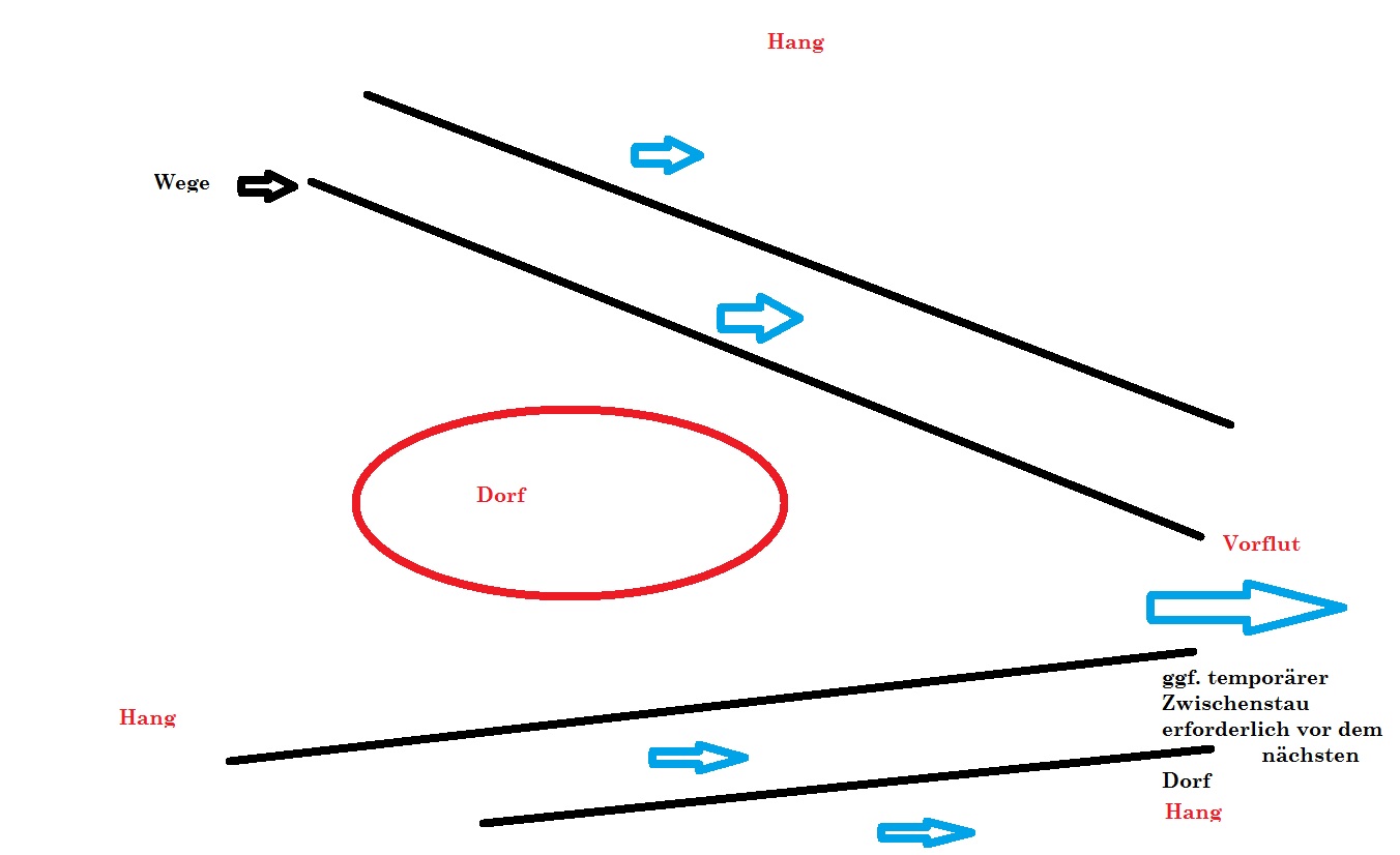 ]T5060 hat geschrieben:Ich kann aber so schlau sein und auf den Hängen die Feldwege paralell zum Ort zuführen und das Gefälle der Wege so machen dass das Wasser vor den Ort fliesst