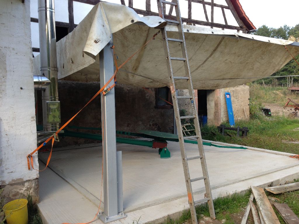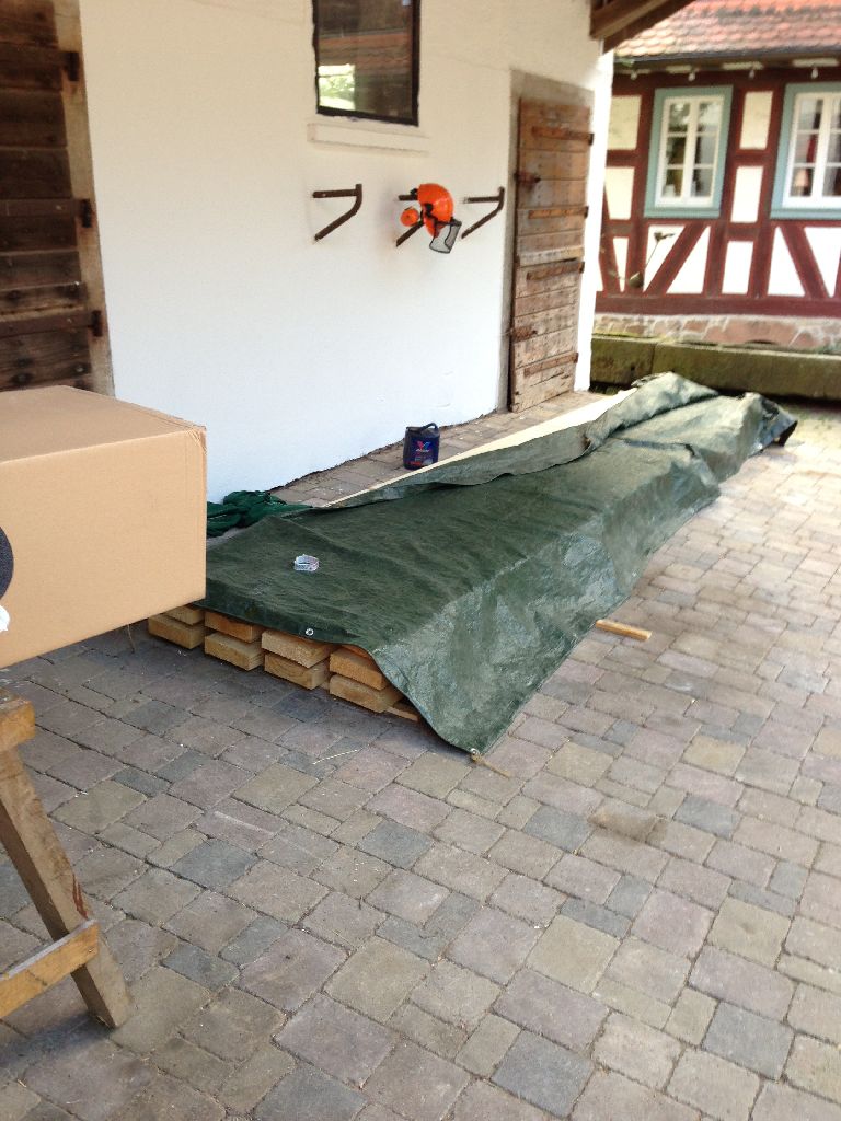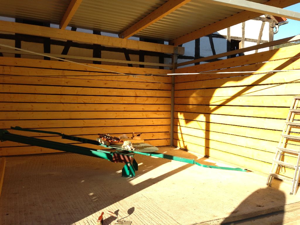 Höher betoniert haben wir nicht weil die Scheune nicht verdeckt werden sollte und Beton außerdem ein Haufen Geld kostet. Das bisschen Verlust an Lagerraum lohnt außerdem den Aufwand imho nicht. (da hätte ich mind. einen Meter mehr draufpacken müssen)