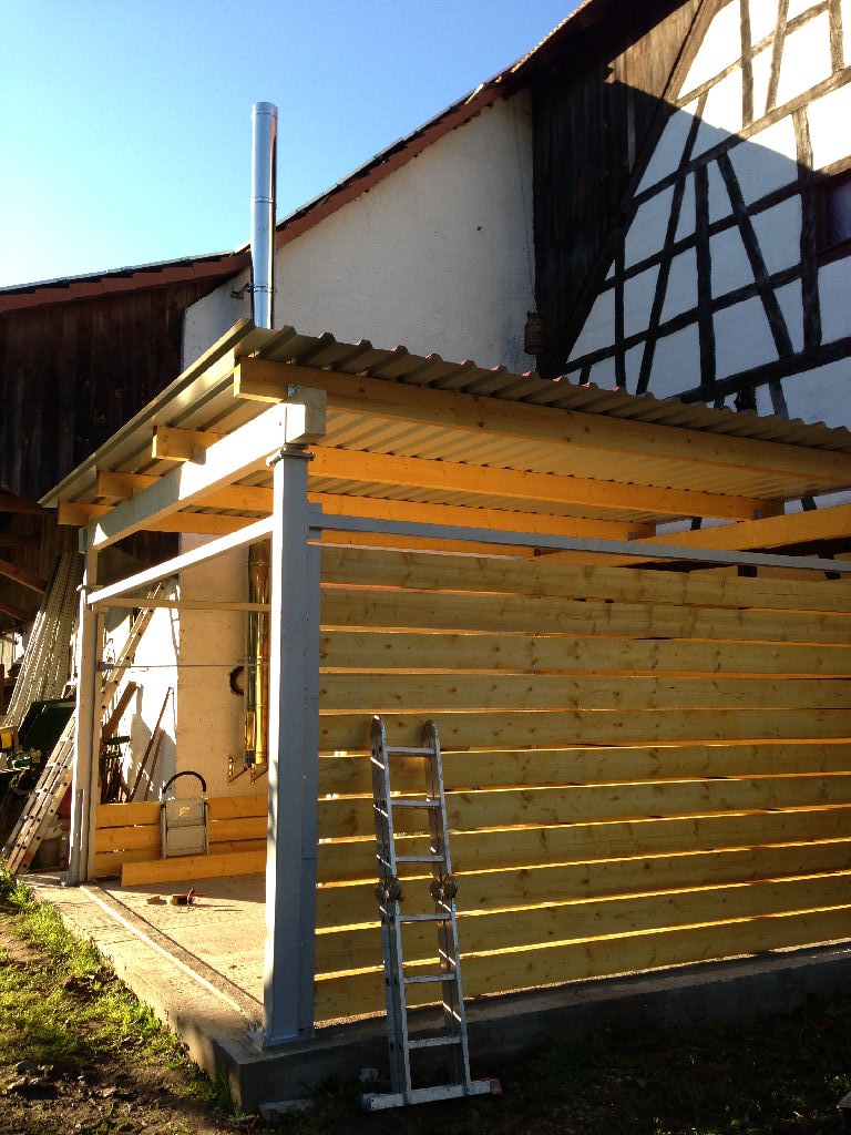 in den Bunker werden wir vorgetrocknete Stämme direkt reinhacken (größtenteils durch einen Lohnunternehmer, teilweise auch selbst). Zu einem späteren Zeitpunkt habe ich angedacht einen Bunkerbefüller mit Schnecke selbst zu bauen um auch Hackschnitzel direkt abkippen zu können.