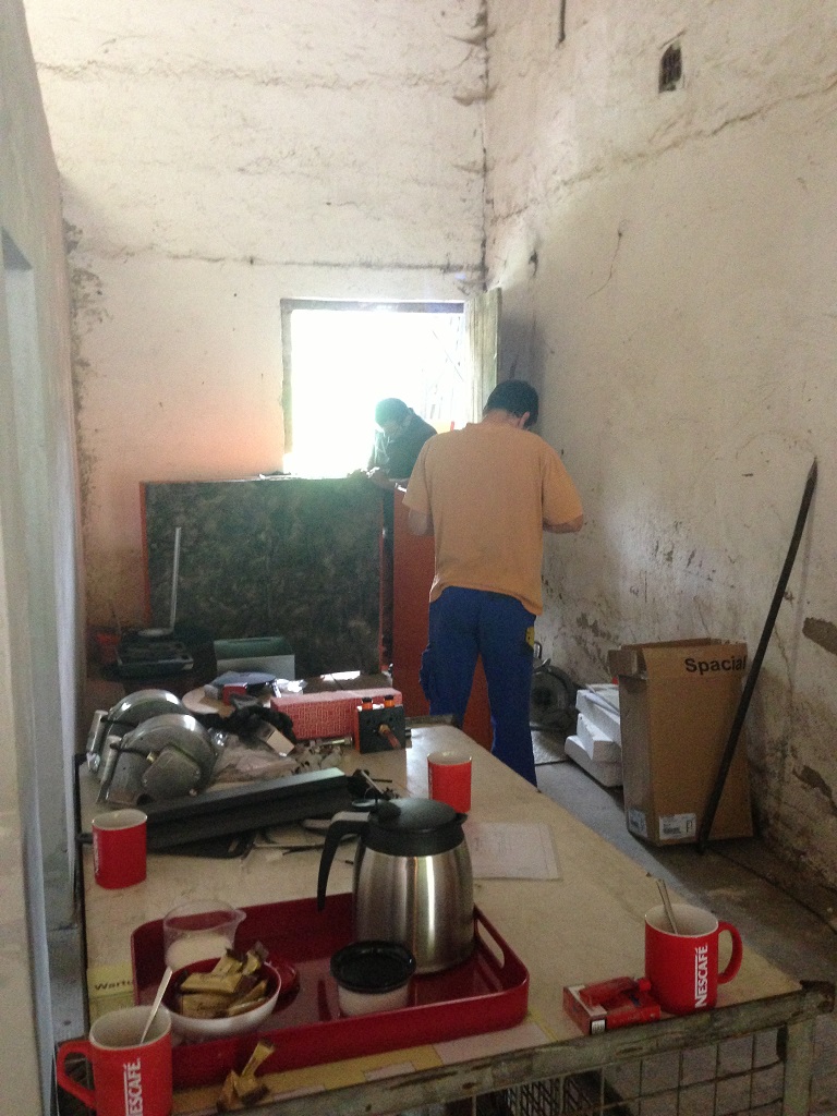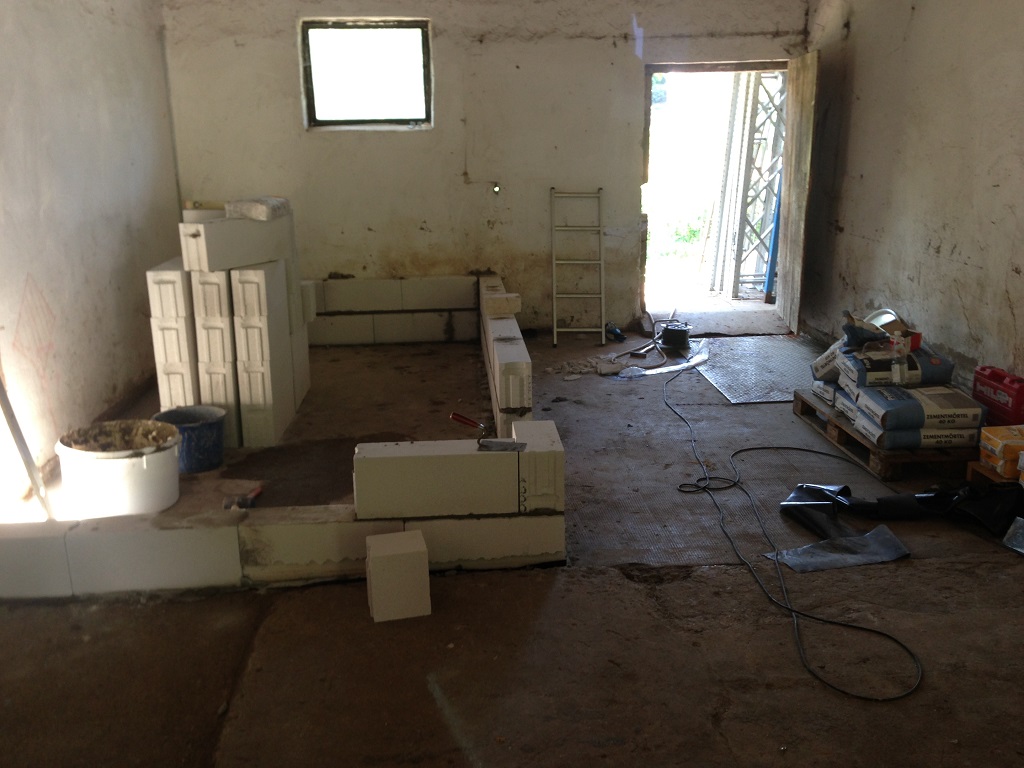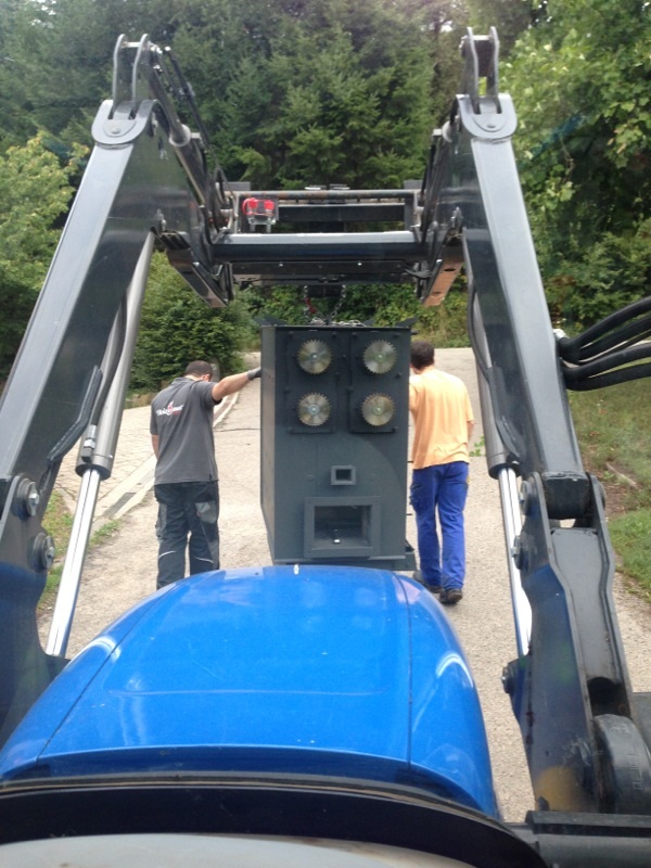 Die Wohnhäuser werden über eine 20m lange Fernwärmeleitung welche bereits seit 15 Jahren liegt angebunden. Der bestehende Holzvergaser fliegt (bis auf die Pufferspeicher) raus, die alte Ölheizung bleibt bestehen und dient in Zukunft als Fallback (bei Störungen). 2000 Liter Pufferspeicher werden weiter verwendet. Am neuen Heizraum wird ein Edelstahlkamin errichtet. (lohnt sich der Aufpreis für einen von Bertram?)