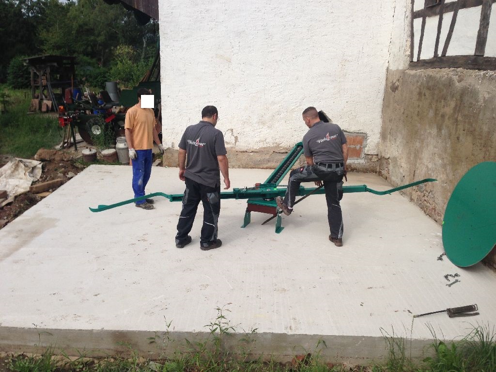 Der Bunker wird, mit dem Jahresbedarf, direkt vom Hacksler befüllt. Die vorgetrockneten Stämme lege ich vor den Bunker ab.
