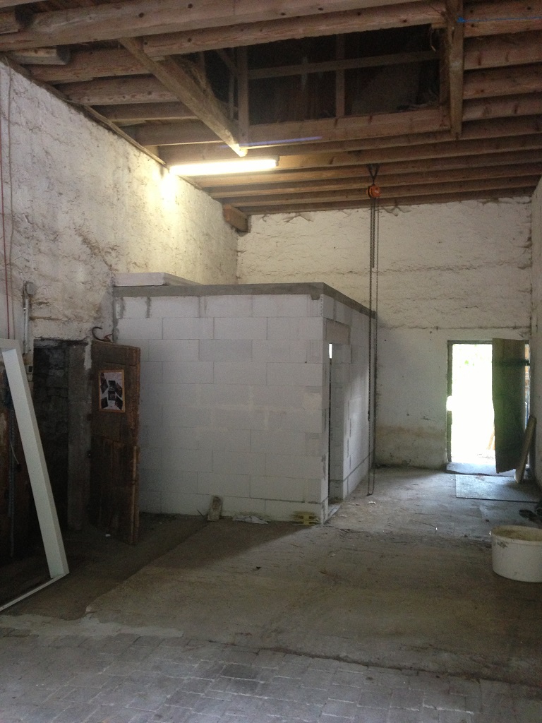 Für den Kessel werde ich einen kleinen Heizraum mauern und auf der hinter einer Wand liegenden Mistplatte einen ca. 125 m3 großen Bunker (aus Holz, 5m x 5m x 5m) bauen in welchem die Austragung liegt. Den Segen meines Schornsteinfegers habe ich für das Vorhaben.