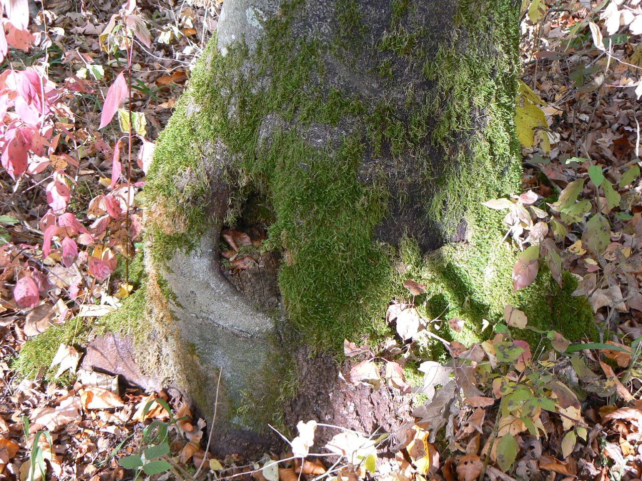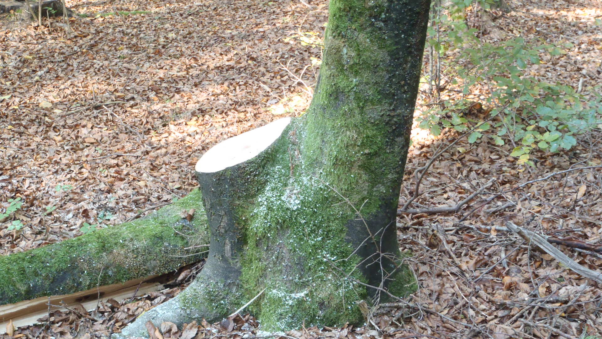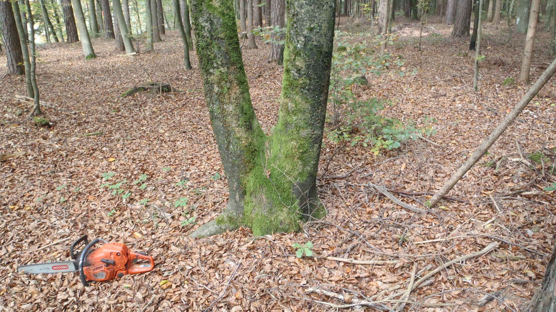 In einem unserer Waldstücke sind uns heute vermehrt Buchen Zwiesel aufgefallen (siehe Bilder unten). Die Bäume teilen sich alle in Bodennähe auf mehrere einzelne Stämme auf.