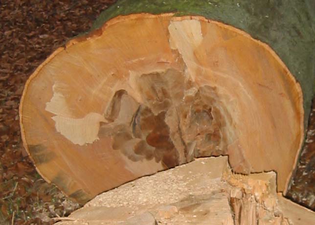 wir haben am Wochenende eine große Buche gefällt. Als Brennholz ist der Stamm eigentlich zu schade. Er ist 10 Meter lang, hat an der Wurzel einen Durchmesser von 80 cm und an der Krone noch 55 cm. Der Stamm ist kerzengerade und hat lediglich 3 abgehende Äste. Der braune Kern hat am Stock einen Durchmesser von ca 30 cm. Insgesamt hat der Stamm ein Volumen von 3,6 m³.
