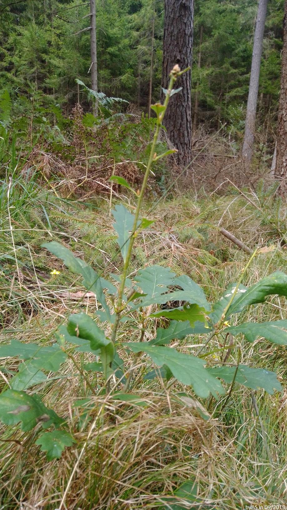 Es gibt hier nur sehr wenig Eichen, trotzdem kommt rel. viel NVJ auf - aber nicht aus der Gras- oder Krautschicht hinaus. So gut wie alle Pflänzchen werden verbissen.