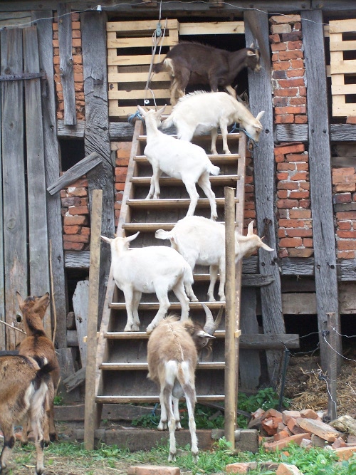 Deine Ziegen finden die Treppe ja wohl auch obergeil. Wie kann Frau alleine die so anbringen?